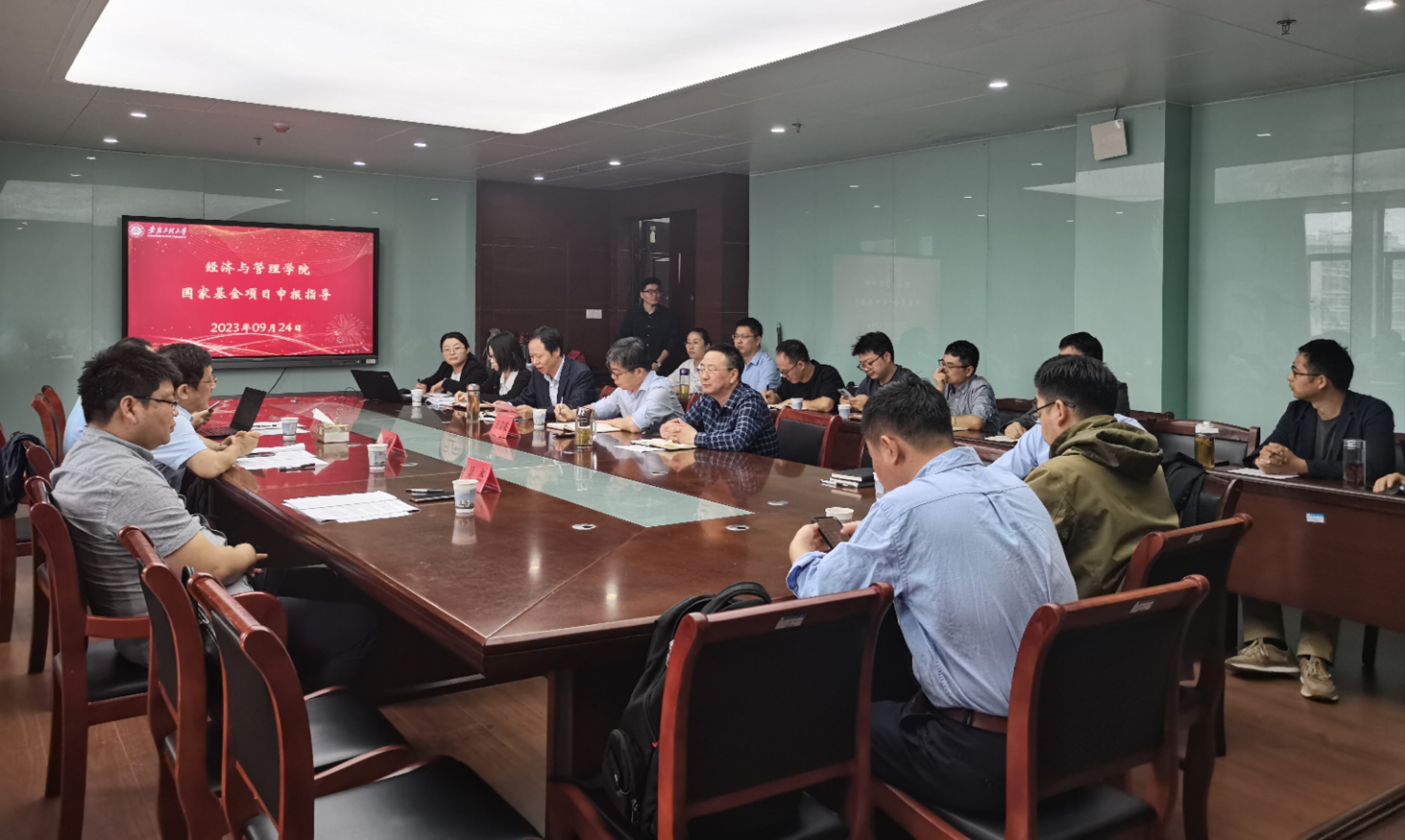 9月24日,经济与管理学院国家基金申报辅导报告会在C座818会议室召开。会议邀请安徽财经大学校副校长宋马林、合肥工业大学副校长吴华清、中国科学技术大学管理学院副院长吴杰三位教授做国家基金申报辅导报告。科技处处长王宗乾、学院院长龚本刚、副院长蔡书凯及拟申报国家科学基金的教师参加了会议,会议由学院副院长蔡书凯主持。