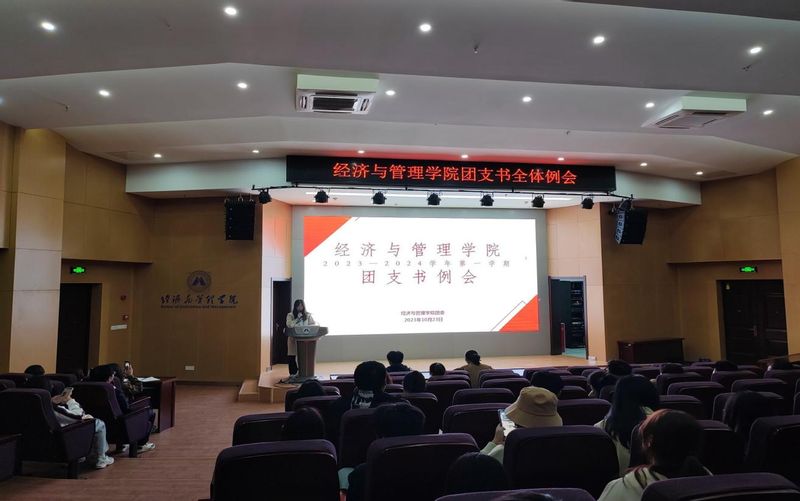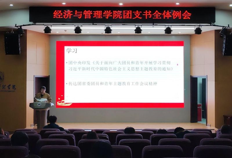 为扎实推进新学期各项工作顺利进行,科学统筹新学期各项团工作,明确团支书工作要点,经济与管理学院于2023年10月23日下午在C座7楼报告厅举行本月团支书例会,学院团委书记赵恒梅主持、院团委学生兼职副书记高星宇、学院团委各部门负责人和志愿者、全院团支书和班长参加了本次会议。