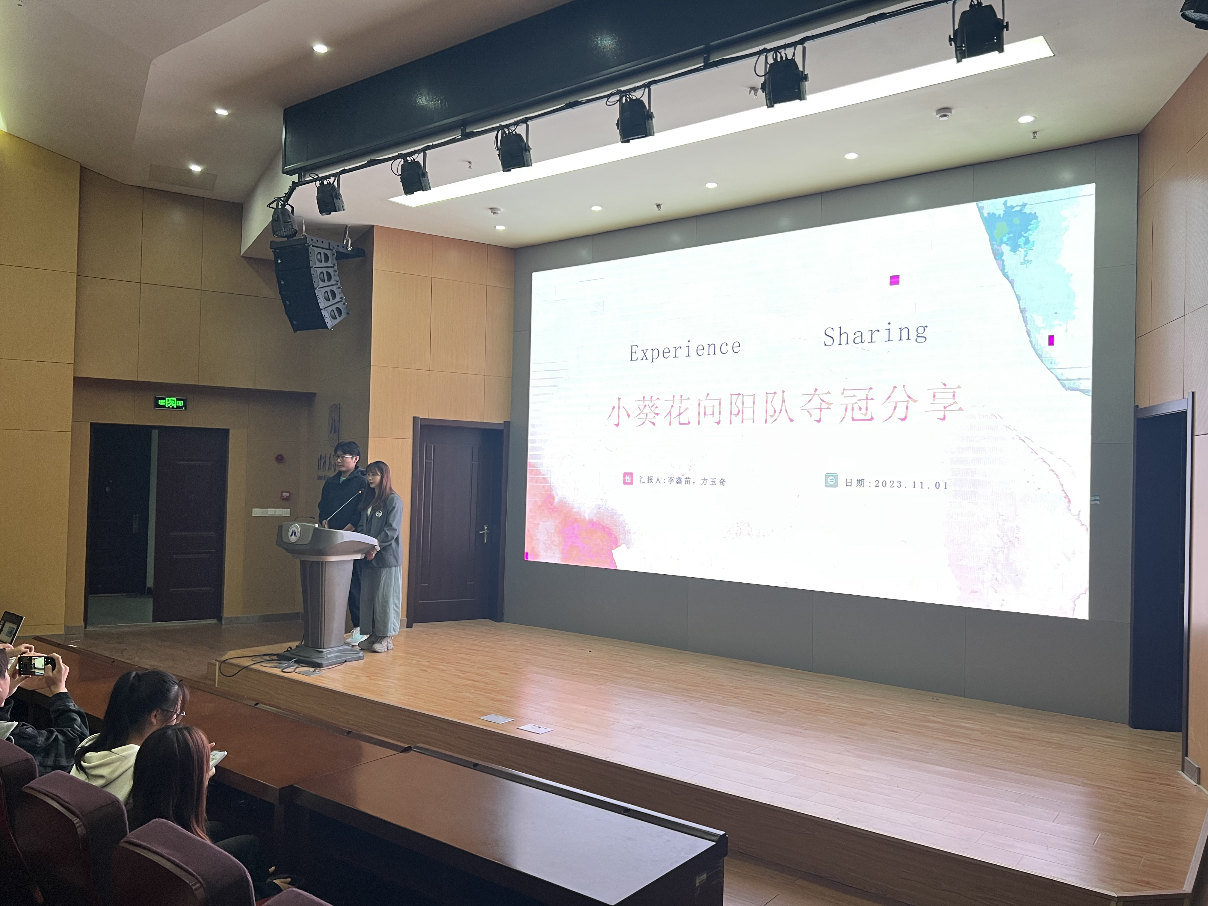 在活动现场,刚刚取得2023年“创新创业”全国管理决策模拟大赛安徽省赛决赛总冠军的小葵花向阳队代表从软件学习、导师选择、企业对标、团队协作等方面和大家分享了夺冠之路。学子们踊跃发言,积极了解比赛详情。