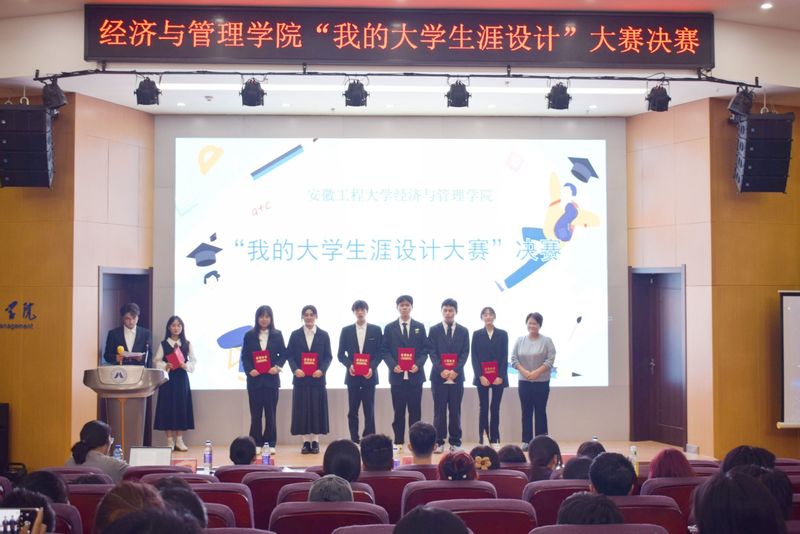 为落实校党委“三全六专”育人工作要求,让学生“学”起来,增强经济与管理学院2023级新生的大学生涯规划意识,引导大一新生树立正确的人生观、价值观和自我认知能力,学院于11月5日在C座7楼报告厅举办“我的大学生涯”设计大赛决赛。校团委、工商系相关老师及2022届优秀选手代表担任评委。学院党委副书记刘海涛、团委书记作为嘉宾出席了本次比赛。