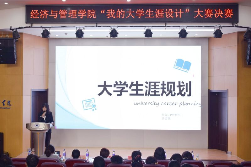 经过初赛和复赛的激烈竞争和评委们的评选,12位选手脱颖而出,晋级决赛。本次决赛分为PPT演讲和提问两个环节。在PPT演讲环节,选手围绕“规划大学路,筑梦启航行”的主题PPT展开,展示了对自己的大学四年发展做出的具体设计规划。其中,营销232盛思睿在大学四个学年中,在每个学年阶段设立了小目标,条理清晰的同时也针对目标明确讲述了具体的实现方法,在评委提问环节,她对自己的目标做出更详细的解释,呈现出从实现一个个小目标的积累从而实现大目标的积极态度。