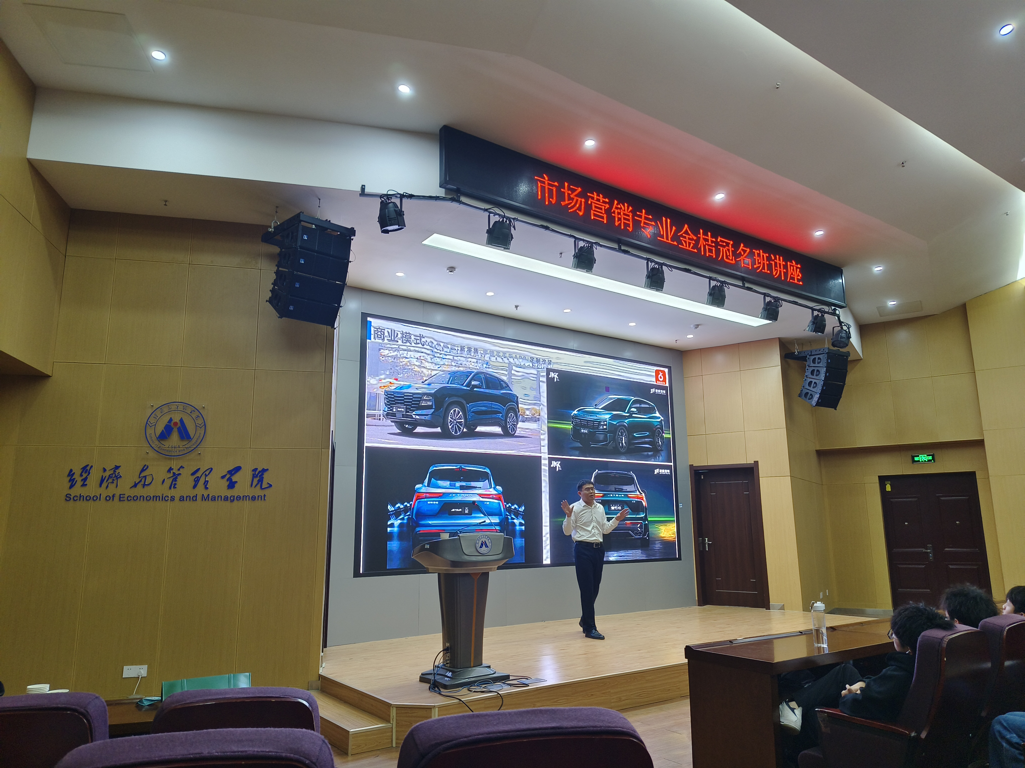 为深入推进个性化人才培养,提高人才培养质量,经济与管理学院市场营销专业“金桔”冠名班企业家讲座于11月6日晚在C座7楼报告厅顺利开讲。芜湖金桔科技有限公司总经理马民丰、“金桔”冠名班全体同学、市场营销系主任及骨干教师参加。