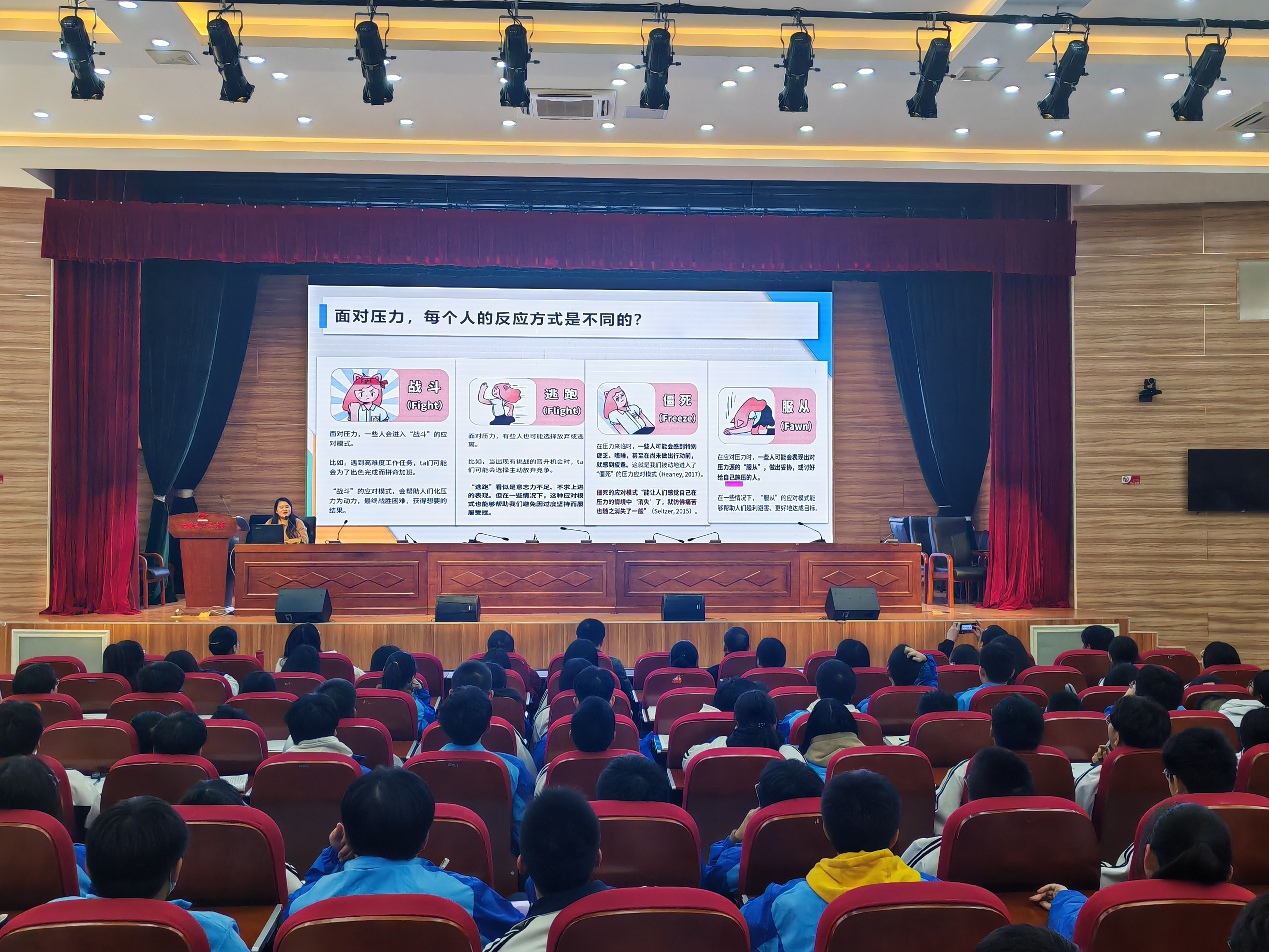 活动后半部分,我校心理健康教育中心钱圆圆老师为高三师生作题为《积极调适,心理赋能》的高中生心理辅导讲座,旨在帮助学生培养积极乐观的心态、拥有面对挫折和困难的勇气和决心,从而促进学生身心健康的全面发展。