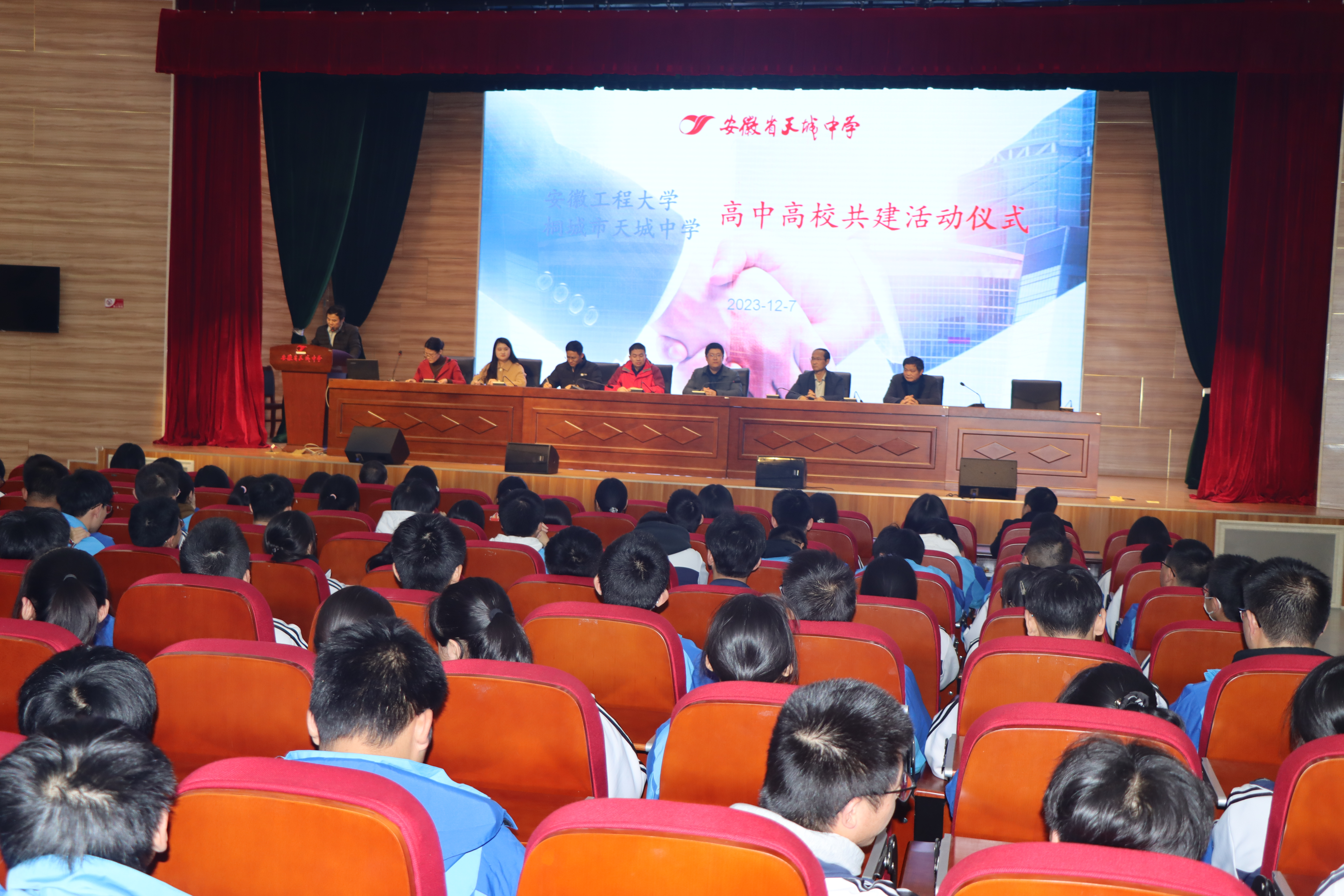 为进一步加强高校与高中的交流合作,搭建双方人才培养的桥梁,12月7日,经济与管理学院党委副书记刘海涛、副院长桂云苗一行赴安徽桐城天城中学开展高中高校协同育人共建活动。天城中学校长、党委副书记程军升,副校长李永梅、童宗产等校领导,以及高三师生500多人参加活动。