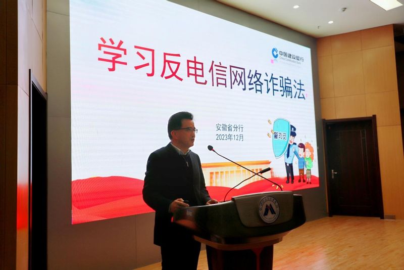 为积极响应党和国家对诈骗从严治理的法治精神,进一步提高大学生的防诈骗意识、掌握防诈骗技能、营造良好的教育氛围,2023年12月10日,RayBetApp官网下载MBA功能型党支部联合建行芜湖分行、芜湖市公安局鸠江分局刑警大队在C座七楼报告厅开展“筑牢反诈防线,共建平安校园”安全防诈主题讲座教育活动。建行芜湖分行反诈工作领导小组副组长刘智、芜湖市公安局鸠江分局刑警大队民警桑高凯,芜湖市公安局鸠江分局反诈中心主任刘俊伟、民警高洁,建行芜湖分行反诈工作组成员汪发萍、郭振丽,RayBetApp官网下载MBA教育中心、RayBetApp官网下载 MBA功能型党支部书记张云丰,以及MBA功能型党支部党员、经济与管理学院2023级、2022级学生代表共180余人共同参加了本次活动。