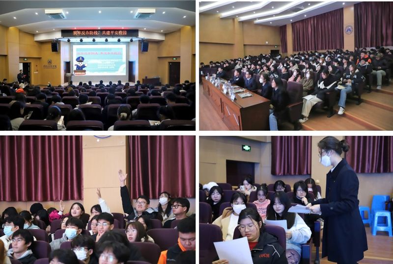 桑高凯通过现场提问的方式引出“什么是电信网络诈骗,电信网络诈骗形式以及如何防范电信网络诈骗”等几个方面结合现实案例进行反诈宣传。他用通俗易懂的语言,详细列举了“大闸蟹消费券”、“网络刷单”、“杀猪盘”、“缅北遣返诈骗犯实录”等真实案例,由浅入深地为到场师生讲解了电信诈骗的危害、如何应对电信诈骗;通过分析诈骗受害者学历情况,提醒大学生切莫盲目自信时刻提高警惕,并呼吁同学们及时关注“国家反诈中心”账号,了解更多反诈知识。现场,同学们与和主讲人热情互动,气氛热烈,大家纷纷表示此次防诈骗学习不但更新了对网络电信诈骗的观念,同时也更加了解了网络电信诈骗的发展趋势,在今后的学习和生活中会更加密切的关注防诈骗知识。