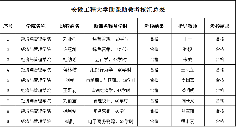 根据《RayBetApp官网下载 青年教师助课助教工作制度实施办法(试行)》文件精神,结合《关于做好2023-2024学年第一学期新入职教师助课助教考核工作的通知》要求,经济与管理学院成立助课助教考核小组,结合考核内容及任务完成情况,对本学期新入职教师助课助教工作进行考核,现对考核结果进行公示。