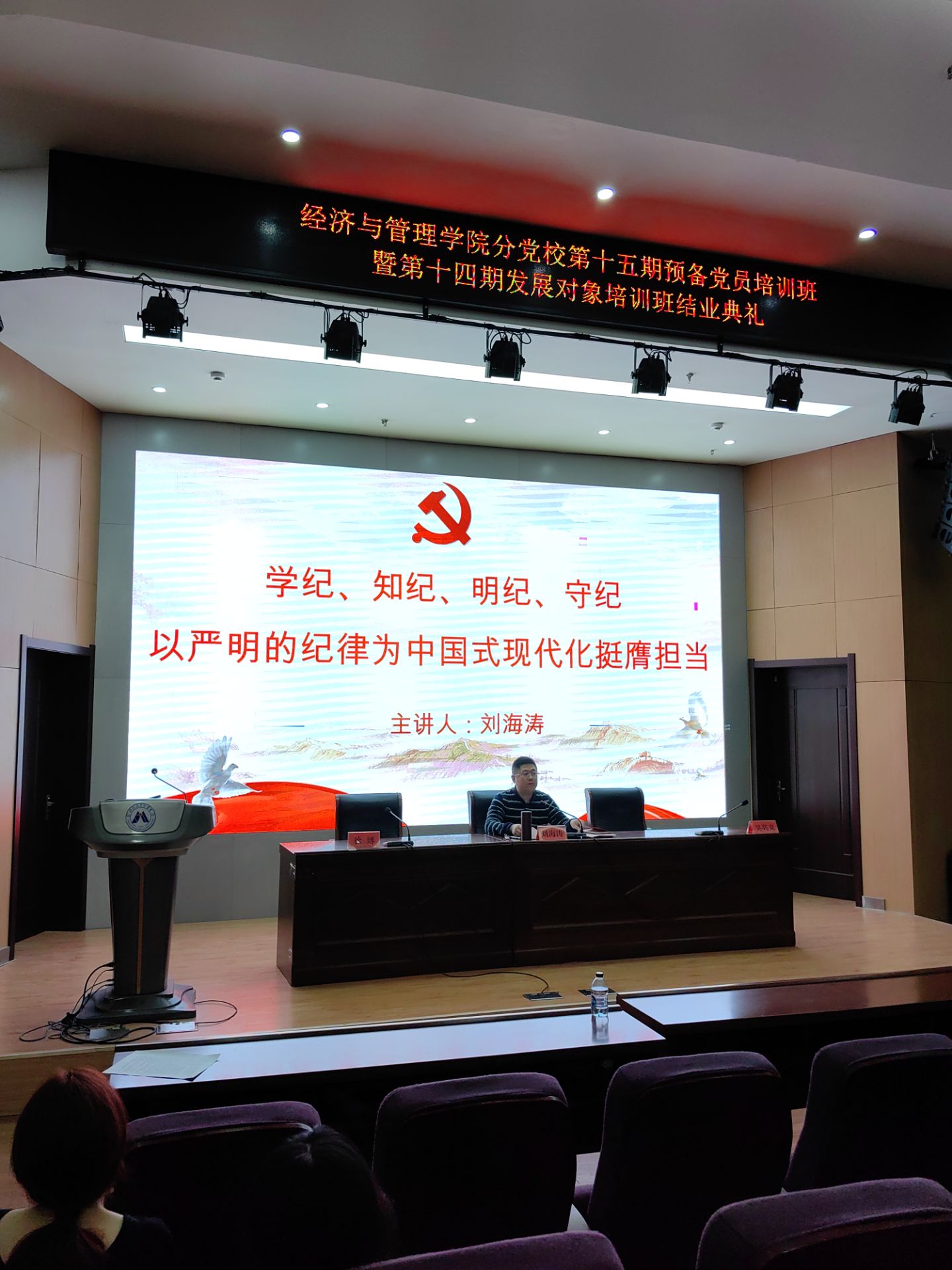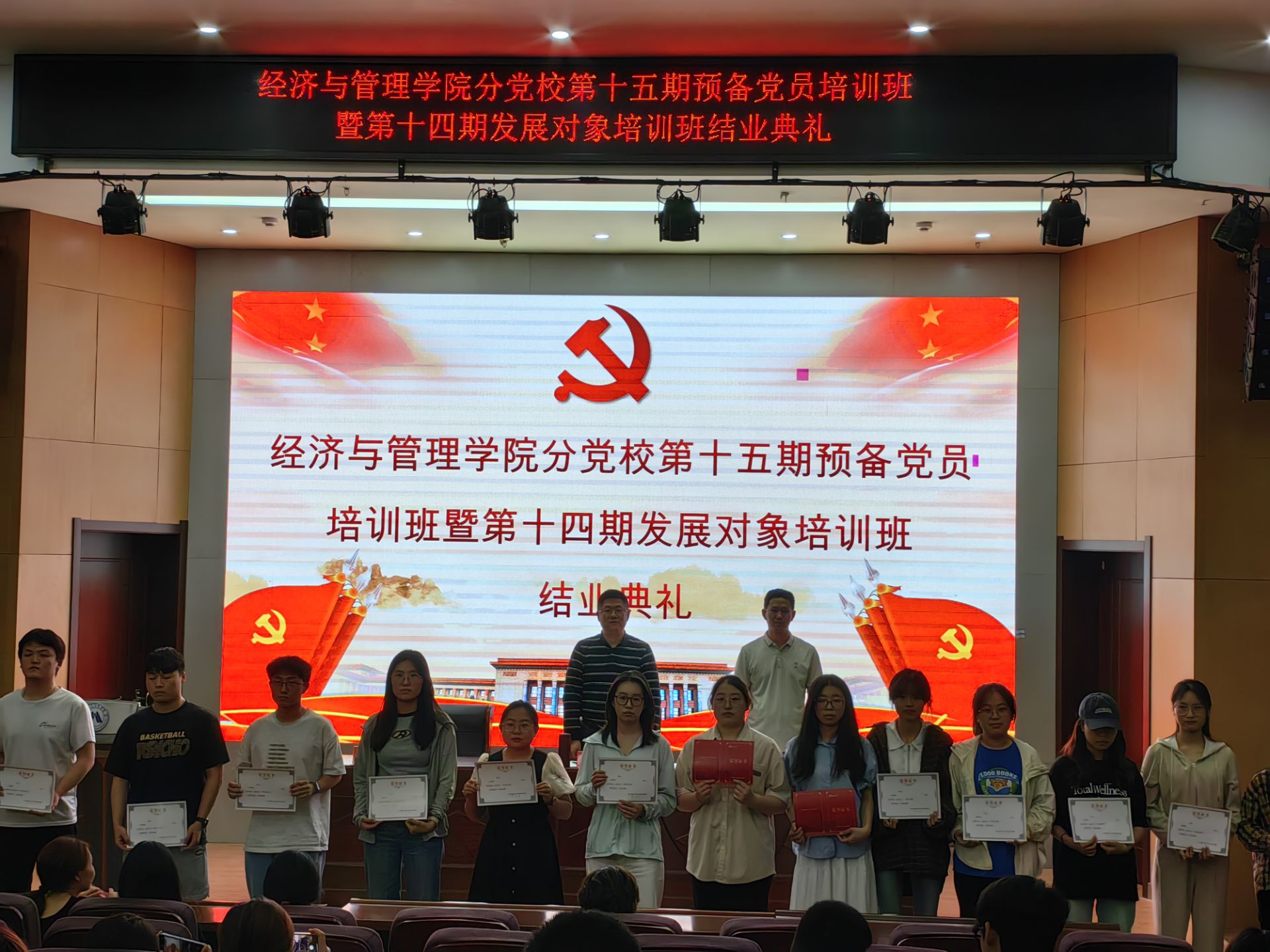 在庄严的国际歌中,经济与管理学院第十四期预备党员培训班结业典礼暨第十二期发展对象培训班开班仪式圆满结束。