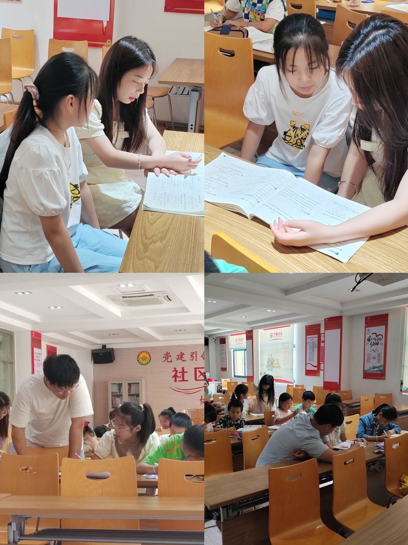 在课堂中,学生们安静地完成暑假作业,遇到问题时便向志愿者提问,志愿者进行耐心地指导,教授学生们解题方法后提出相应的问题,加深学生的印象。只有翻书和写字声的教室里,学生们提高学习成绩,实现弯道超车。