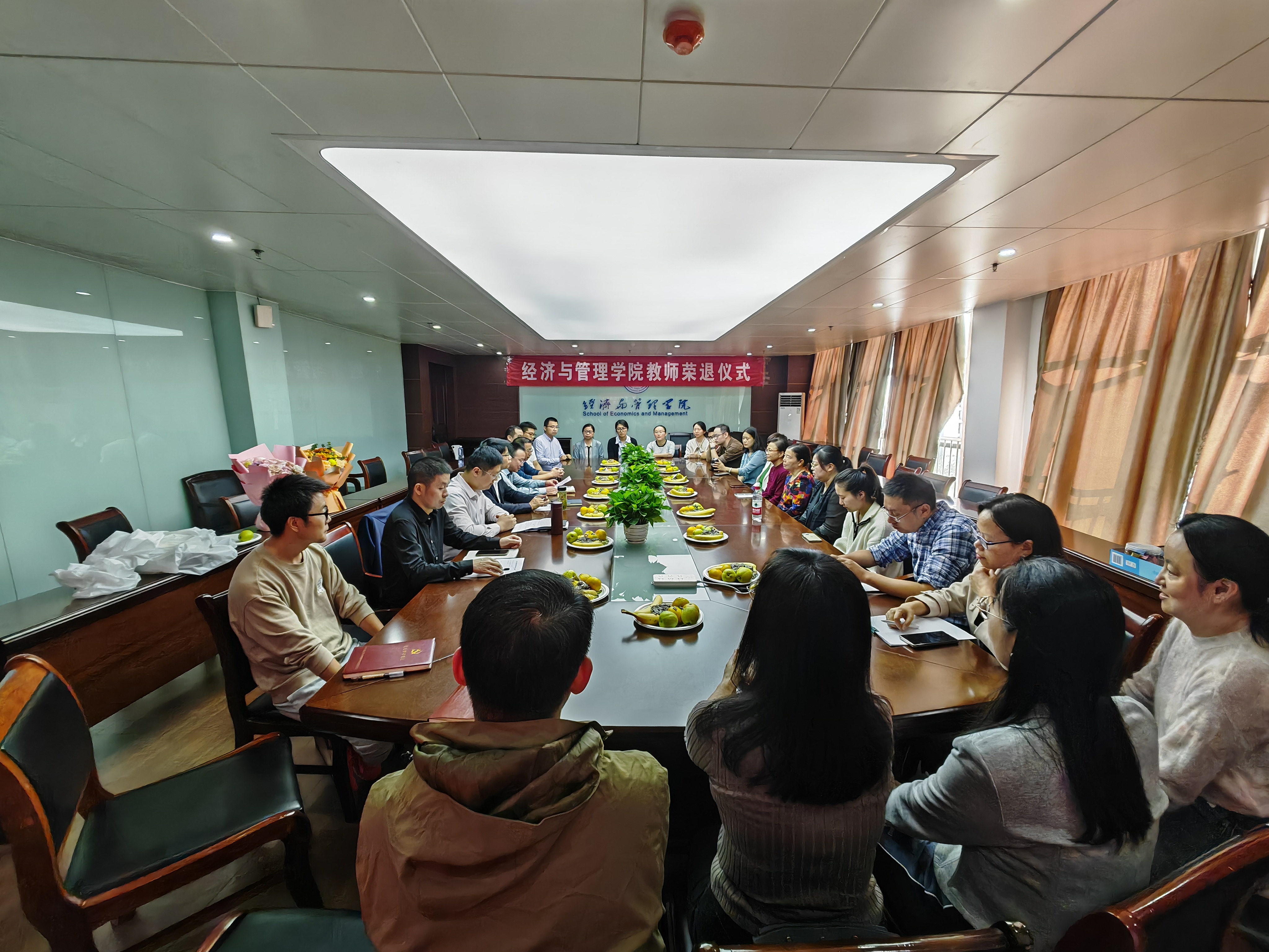 10月18日上午,经济与管理学院举办2024年度退休教师荣退仪式,共同欢送张丽霞、周爱珠老师光荣退休。学院领导班子,系部主任、科级干部和教师代表参加仪式。荣退仪式由学院党委副书记、纪委书记刘海涛主持。