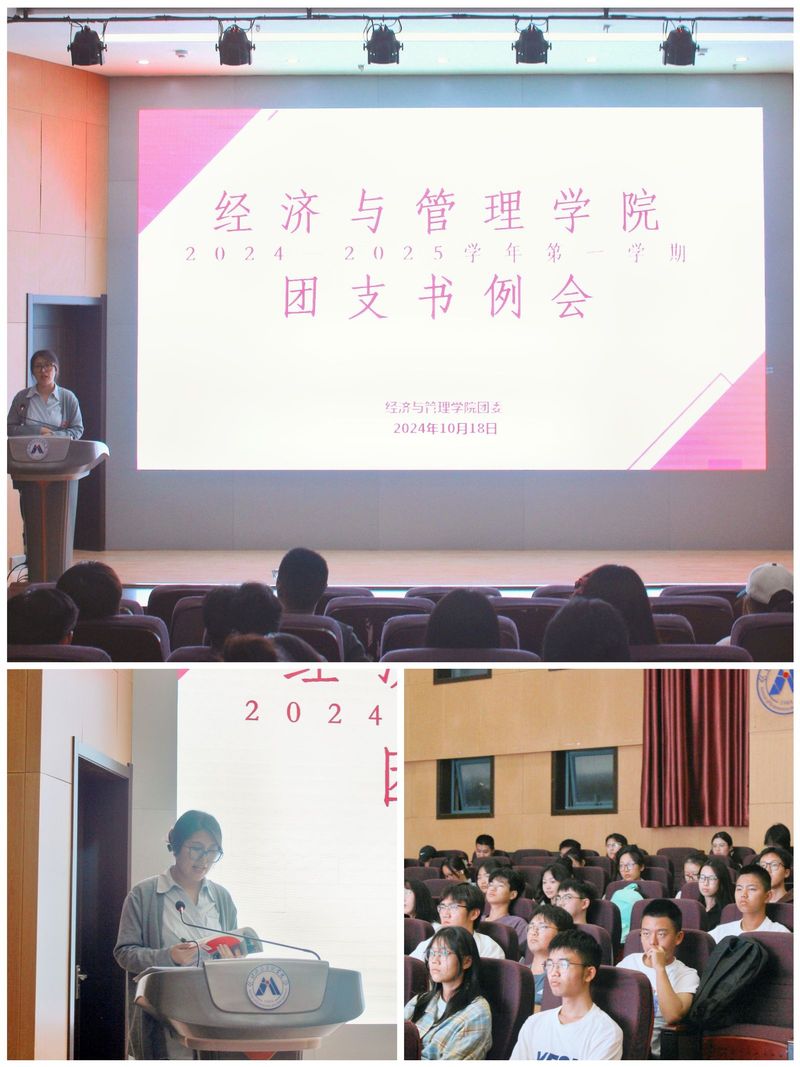 为加强我院团组织工作建设,凝聚青春力量,共同开启新学期的工作篇章,经济与管理学院团委于2024年10月18日晚上6点在C座七楼报告厅召开了2024—2025学年第一学期团支书例会。学院团委书记赵恒梅,全院各班级各社团团支书、副团支书,院团委各部门负责人及志愿者参加了此次会议。