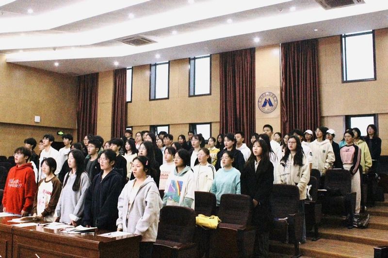 最后,在全体成员奏唱中国共青团团歌中,开班式正式结束。