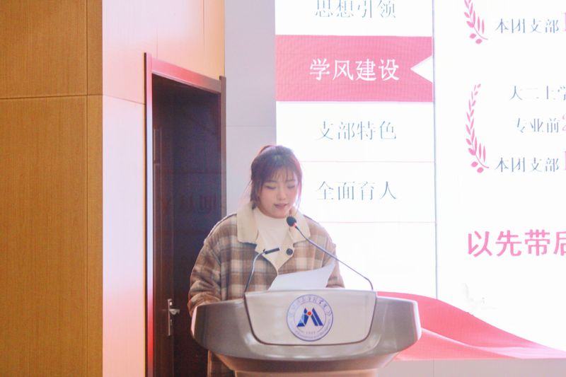程畅为在座学生模拟了真实的比赛环境,她以“汇聚青春力量,引领活力风尚”为主题,从支部概况、思想引领、学风建设、支部特色和全面育人五个方面介绍了经济与管理学院物流221团支部。同时,程畅也向在座学生提出仔细留意比赛通知、注重班风建设、积极参与志愿服务等方面建议。