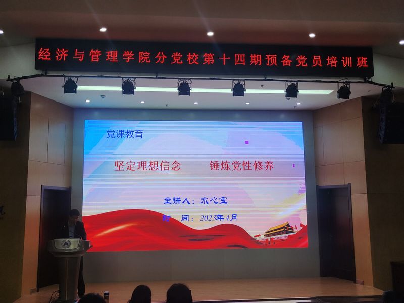 4月19日下午,经济与管理学院分党校第十四期预备党员培训班开班式在C座七楼报告厅举行。学院党委书记水心宝、党委副书记刘海涛、组织员、班主任以及本期培训班全体学员参加开班仪式。