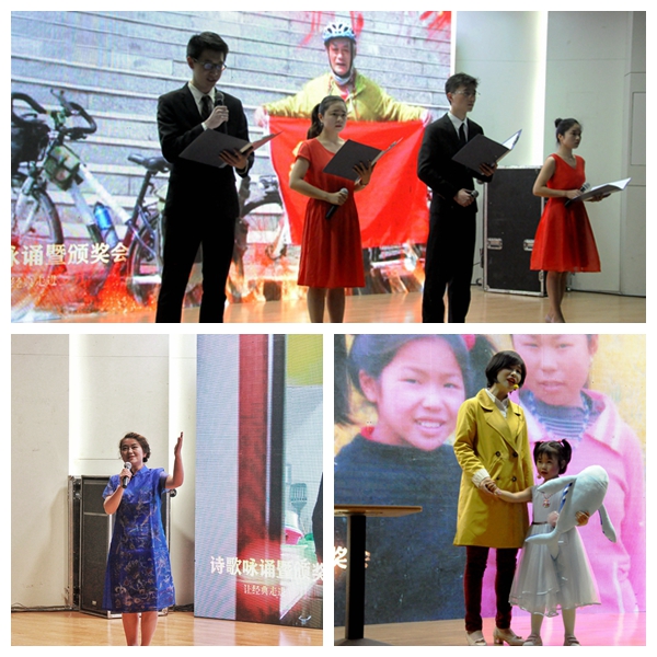 诗歌吟诵在校附属幼儿园小朋友们精彩的歌舞表演《春晓》中拉开序幕。省教育系统演讲比赛冠军张茜和她的爱人陶冶深情朗读《给我的孩子》,质朴的语言中流露出对孩子无微不至的关怀;78岁高龄的省部级劳模冯寿崑激情朗诵《对衰老的回答》,儒雅之中的坚定让人肃然起敬;笑面人生,铸铁成花,纺织与服装学院身残志坚的邹梨花老师与女儿一起朗诵的《笑》,表达了对幸福生活的由衷感谢;重走长征路,传承长征精神,感恩党的伟大,赵国庆教授和曹锦芬主任医师的红色骑行故事寓情于校广播台同学深情朗诵的《长征》之中;长情的陪伴最可贵,校工会女工委员王燕老师用《我愿是激流》讲述了全国最美家庭获得者王幼民、唐铃凤长情陪伴的温暖故事;美丽的校工会女工委委员们带来的经典诗歌《致橡树》,深情表达了对独立而美好的爱情追求和向往,将全场的氛围推向高潮。