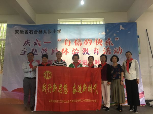 六一前夕校工会组织体育学院体验教育研究中心团队参加由省教科文卫体工会主办的第三届为农村留守儿童提供关爱服务活动。分别为台县少奇红军小学和九步小学的农村留守儿童开展了“崇尚英雄,传承红色”和“快乐的自信”主题营地体验教育活动。安徽省教科文卫体工会女工委主任王兰,校工会主席王河,安徽省教科文卫体工会女工委副主任、校工会副主席张寅红,体育学院体验教育研究中心主任薛保红,以及其他高校工会负责人参加了此次活动。