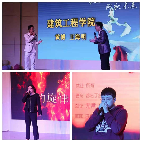 大赛在第二届安徽省大学生国家通用语言文字应用能力大赛家国·青春诵读大赛决赛选手慷慨激昂的朗诵《英雄》中拉开帷幕,一句句铿锵有力的壮志豪言,生动演绎出一个个英雄梦。 接着,来自全校十六个二级党组织的决赛选手用一首首或深情或欢快的歌曲,唱出了对新中国的赞美,对新时代的向往。一首《我和我的祖国》,唱出了对党和祖国的无限忠诚与热爱;一首《QUESERASERA》,以突出的舞台表现力,燃爆全场;一首《爱拼才会赢》,充满创意诙谐的表演,表达了拳拳的爱校之情;一首《新的天地》,荡气回肠、气势磅礴,让整个现场沸腾……深情的演唱、动听的旋律、欢快的节奏,展现新时代青年教师积极向上的良好精神风貌,赢得了现场观众的阵阵掌声。
