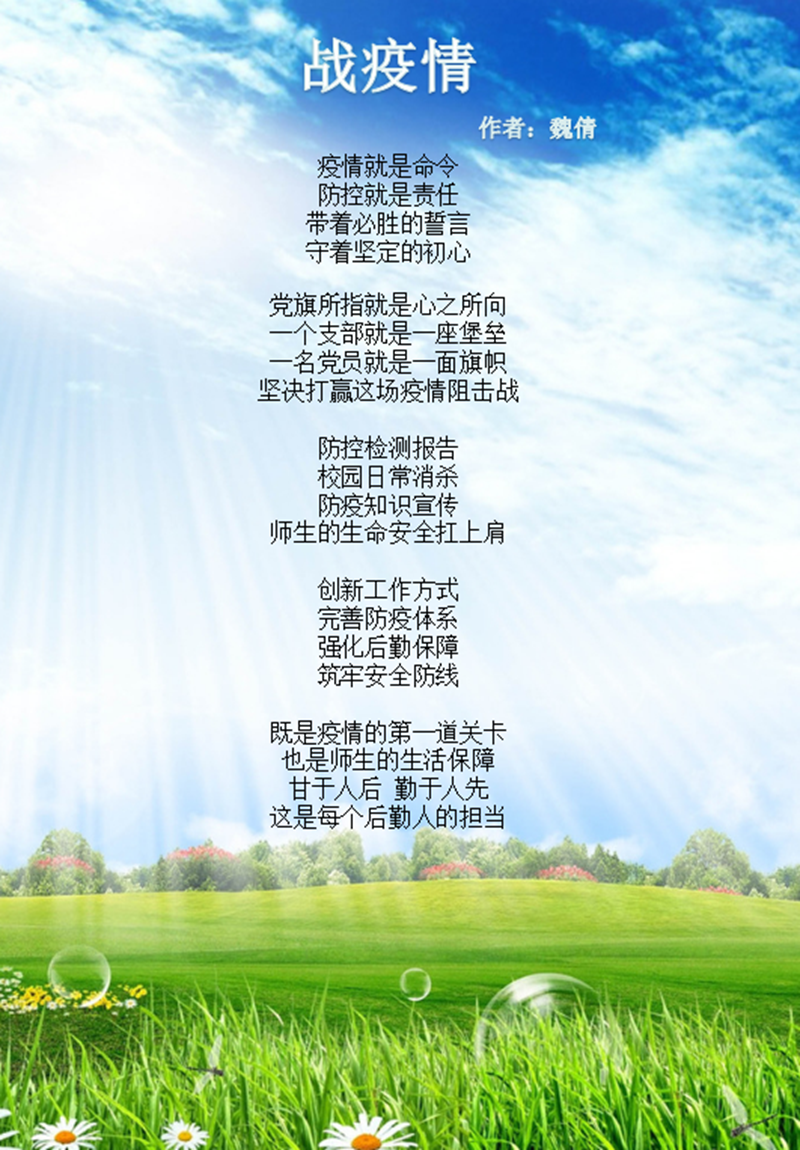 为庆祝三八国际劳动妇女节,丰富后勤保障处女同胞们在疫情期间的防控工作和生活,彰显后勤女教职工的巾帼风采和精神面貌,后勤保障处分工会积极响应学校工会开展“云动春天”主题的系列活动。 活动期间,分会领导高度重视,广泛宣传,积极组织分会女教职工参加线上比赛。自三月初通知下达至活动结束,共收到47份参赛作品。所有参赛作品紧扣活动主题,通过音视频、照片等形式展示了后勤女教职工疫情期间坚守岗位、履职尽责、忘我工作以及健身、美食、生活秀等精彩瞬间。 近期,分工会组织7名评委对所有参赛作品集中进行评选,评出一等奖3名,二等奖6名,三等奖9名,优秀奖29名,并为获得优秀成绩的女教职工颁发了精美的礼品。 本次分会活动,展示了后勤保障处女教职工在平凡的岗位上为抵御疫情所做的切实工作和积极向上健康阳光的精神面貌。在这个特殊的春天里,我们同心战“疫”,一起迎接花开校园!