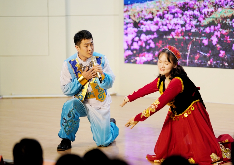 赛前的暖场视频《音为梦响》为比赛营造了浓郁的现场氛围,比赛在一首新疆歌舞《掀起你的盖头来》拉开序幕,机械学院党委张振老师和夫人的默契演唱为现场观众带来了冬日里的欢乐。由各二级党组织组成的16支参赛队伍依次登场,为现场观众带来了或悠扬婉转或欢快激昂的精彩演唱。后勤党总支的宋青、杨丹玥老师用一首《山楂树》传递出纯真与浪漫;体育学院党总支许诚老师以一首轻柔婉转的《贝加尔湖畔》让观众身临其境;马克思主义学院党总支刘艳、苗智慧深情演绎的《父亲》感人至深;经管学院党委张丽霞老师,坚守教学30年,她以一曲《映山红》传递红色精神;机关党委滕敏用一首《大地飞歌》传递出积极乐观的人生态度;外国语学院党委汪美芳老师的吉他弹唱《You are beautiful》清新而温暖……参赛选手中既有刚入职的新教师,也有坚守讲台三十年的老教育工作者,他们饱含对祖国对学校的深情和热爱,用歌声为青春助力,用歌声唱响未来。