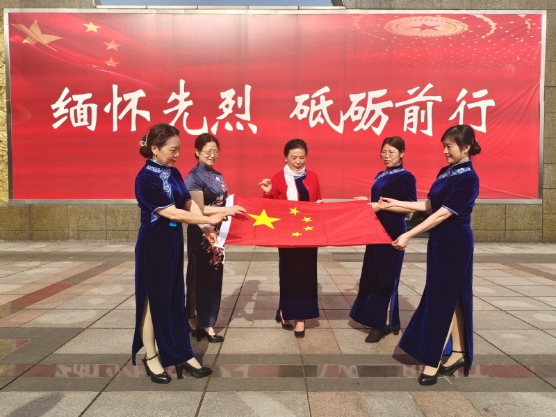 没有共产党就没有新中国,为庆祝中国共产党建党100周年, 近日,校教职工旗袍协会以别开生面的方式开展了 “缅怀先烈,牢记党恩”为主题的户外展示活动。 会员们在邬红芳会长的带领下,怀着崇敬的心情来到神山烈士陵园,4月的神山烈士陵园,苍松翠柏环绕的烈士纪念碑巍峨耸立,庄严肃穆。协会党员在雄伟纪念碑前,在鲜艳的党旗下,由余新霞同志领誓重温了入党誓词。随后会员们身着旗袍在“绣红旗”的旋律中展示了《江姐》中的绣红旗,表达对先烈的缅怀和崇敬。通过主题活动,加强了协会的革命传统教育,提升了协会活动层次,大家表示要缅怀革命先烈,传承红色基因、弘扬革命精神、汲取奋进力量,在学校建设和发展中更好发挥“半边天”作用。