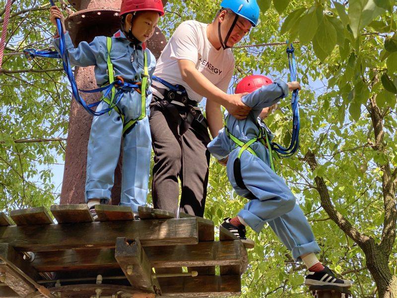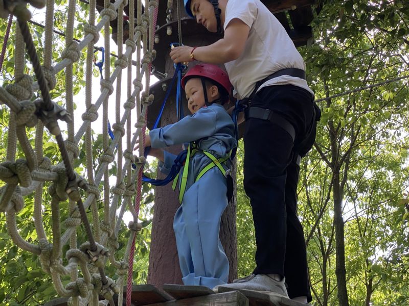 为了加强孩子们的爱国主义教育,锻造坚韧的意志品质,体验红军前辈们不畏艰险、跨越重重困难、勇往直前的理想信念。本次活动根据不同年龄,结合活动主题设计了国防运动、丛林穿越两个体验项目。三个组别的孩子们在拓展老师的带领下,穿上红军服、戴上红军帽,显得既兴奋又紧张。兴奋也许是因为孩子们的内心也有一个军人梦,红军在他们的心目中都是大英雄,内心自然无比自豪与骄傲,紧张也许是即将体验英雄前辈们的艰辛与不易和从未体验过的凌空栈道和国防运动项目。活动中,孩子们或团队作战或独立前行,完成一个又一个小挑战,收获了户外拓展的挑战和快乐,提高了团队合作精神,增强了爱国主义意识。