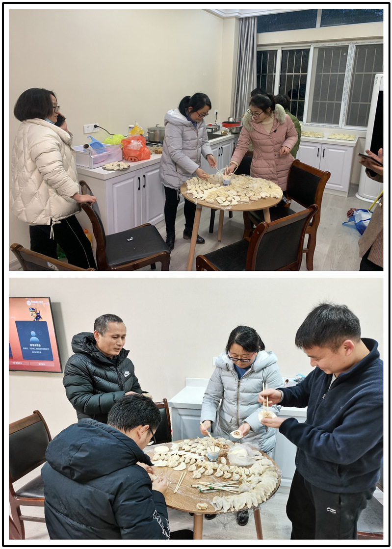 包饺子是一个需要团结协作的工作,在包的过程中由最开始的商量分工到后来的拉家常,不论是领导还是普通老师,大家的关系一下子又拉近了许多,“阳光家园”欢声笑语,将冬天的寒意驱之殆尽。当热气腾腾的饺子端上来时,大家一片欢呼声,争先恐后地品尝着美食,分享着快乐,互相祝福,共贺新年。