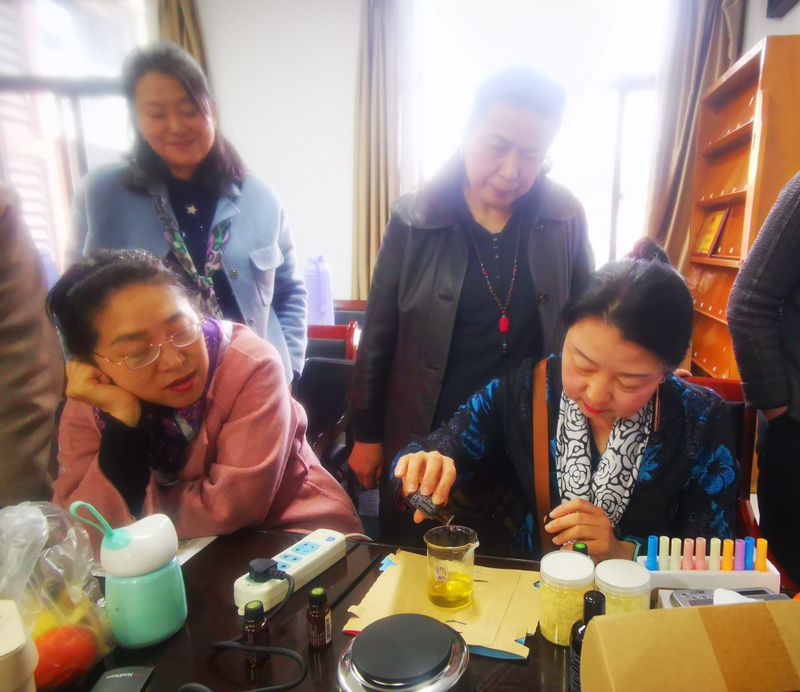 为庆祝“三八国际劳动妇女节”,3月12日校旗袍协会开展“香约星期天-走进芳香世界”活动,活动由旗袍协会会长邬红芳教授主持。 邬教授从精油、芳香疗法的定义,精油的起源、芳香精油的作用和使用方法等方面系统介绍了芳香精油知识,带领大家用“142嗅吸法”体验野橘、薄荷精油的芬芳,品尝了柠檬精油风味酸奶。薄荷精油香味直入心扉,余香萦绕,神清气爽,心旷神怡,让大家真实感受到精油的神奇香味。在了解了精油的使用方法后,大家动手制作了精油鼻炎膏。 在活动中,会员们饶有兴趣地体会了精油的妙用,加深了对种类繁多的芳香世界的了解,收获了芳香精油知识。大家纷纷表示,对大自然馈赠给人类的芳香产物要好好珍惜和科学利用。 通过活动,旗袍协会的老师们学习了更好的热爱生活和关爱家人!增强了协会大家庭的凝聚力!