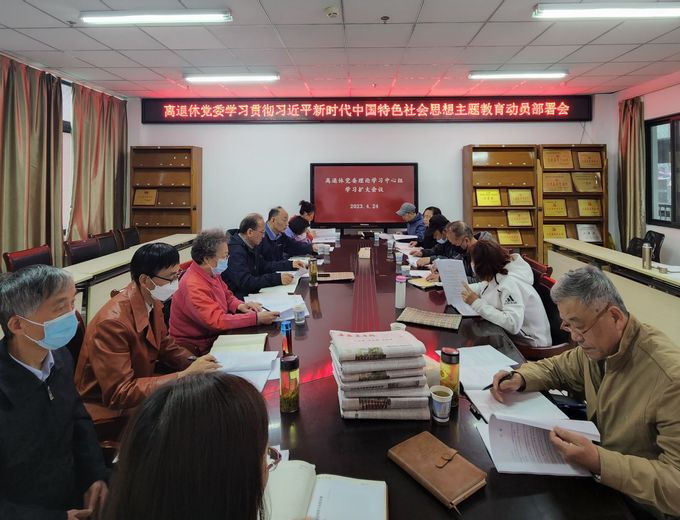 4月24日,离退休党委召开学习贯彻习近平新时代中国特色社会主义思想主题教育动员部署会暨理论学习中心组学习扩大会议。离退休党委班子成员、理论学习中心组成员、各支部支委、党员代表、工会(离退休工作处)全体党员参会。 会上,大家认真学习了习近平总书记在学习贯彻习近平新时代中国特色社会主义思想主题教育工作会议上的重要讲话精神,传达学习了学校党委关于深入开展学习贯彻习近平新时代中国特色社会主义思想主题教育的工作方案。理论学习中心组成员围绕离退休党委开展主题教育工作方案,结合围绕规定的8个方面重点内容和学校中心工作,联系离退休工作实际,开展首次交流研讨。
