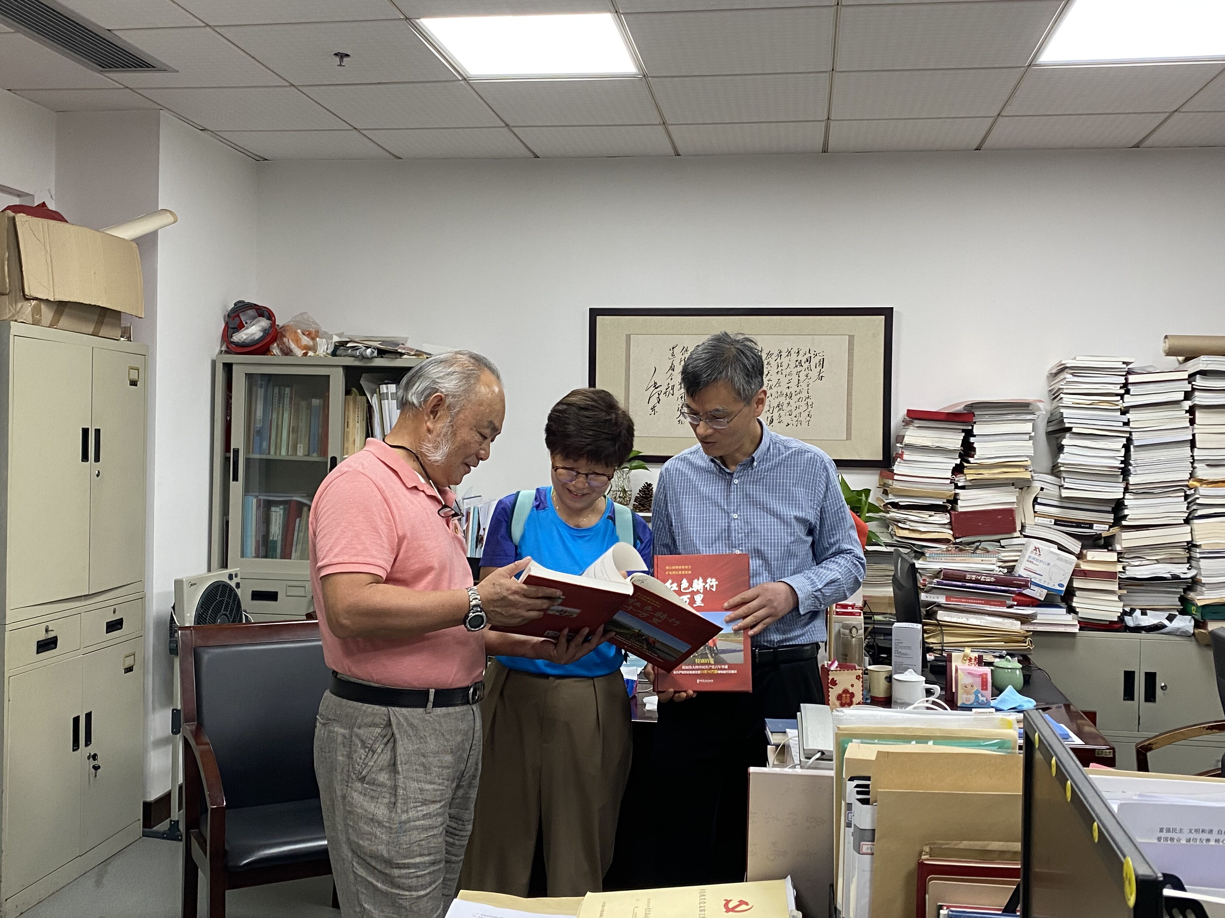 参观学习结束后,在离退休党委书记张寅红、副书记程繁见证下,赵国庆、曹锦芬夫妇将著作成果《红色骑车十万里》一书捐赠给南湖革命纪念馆,还就后续合作与纪念馆工作人员进行了充分的交流。