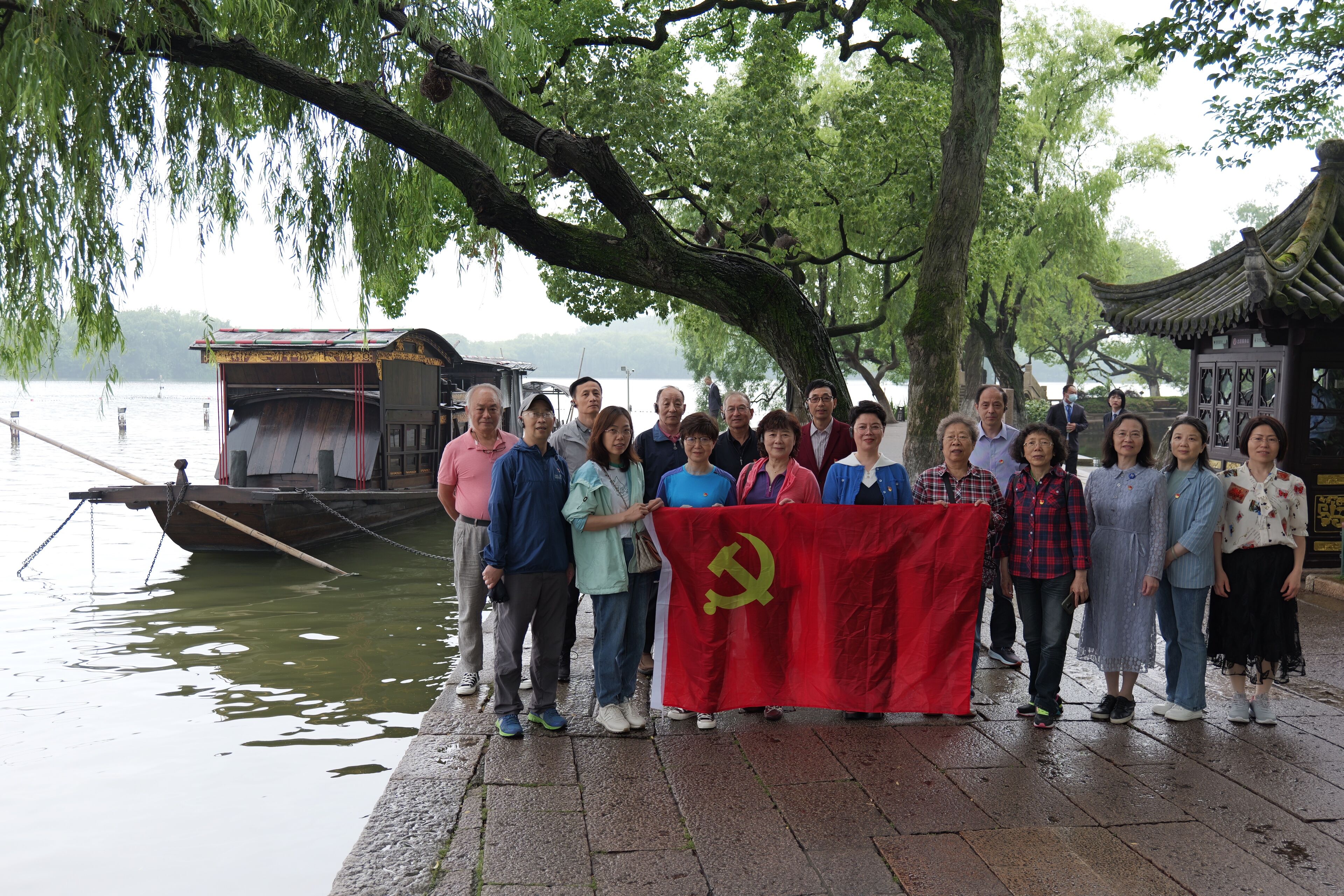 为学习贯彻党的二十大精神,扎实推进主题教育,6月7日,离退休党委理论学习中心组全体成员、校关工委驻会委员到嘉兴南湖红船重走“一大”路,开展“重温红船精神,忆昔峥嵘岁月”主题教育学习调研活动。 在讲解员带领下,全体成员跟随党的“一大”代表足迹,从1921嘉兴火车站开启红色寻根之旅——嘉兴火车站老站房,春波门、狮子汇渡口、中共“一大代表”人物雕塑群等,在沉浸式体验学习中,探索中国共产党人的精神密码。随后,大家乘船至南湖湖心岛,瞻仰了南湖红船。