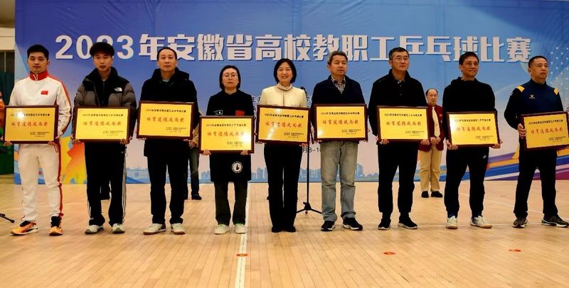12月9日至10日,由安徽省教育厅举办、安徽师范大学承办的安徽省高校教职工乒乓球比赛在安徽师范大学顺利举行。来自合肥工业大学、安徽工业大学、安徽理工大学、安徽医科大学、安徽中医药大学等全省高校42支代表队参加了本次比赛。校工会积极组织由副校长郑健领队,凤权、胡承功、卢祥、严楠、朱祥瑞等为队员的最强阵容参加比赛。