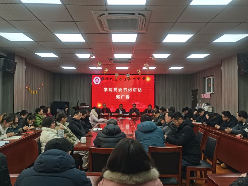 学院党委书记郭广春出席会议并讲话。他代表学院党委对大会的成功举办表示热烈祝贺,对全体与会老师和工作人员的辛勤工作表示衷心感谢。他表示这次大会是在全校上下深入贯彻落实党的二十大精神,推进学校高质量内涵式发展的背景下召开的一次重要会议。他强调,2023年学院党委行政聚焦“走好专精特新之路、建设真材实料学院”的目标不断迈进,全体教职工勠力同心、团结奋斗,学院教学科研社会服务全面开花,取得显著成效。他从“提高‘政治三力’,把准方向立德树人”“对标‘三全六专’,全员参与塑造品牌”“坚持‘谋划落实’,步步为营行稳致远”“坚持‘凝心聚力’,充满活力增添动力”“坚守‘底线思维’,安全稳定人人有责”等五个方面提出要求,作出部署,做到思想上合心,执行上合力,工作上合拍,携手共谱新篇章,同圆强院梦,交出让党和人民满意的答卷。