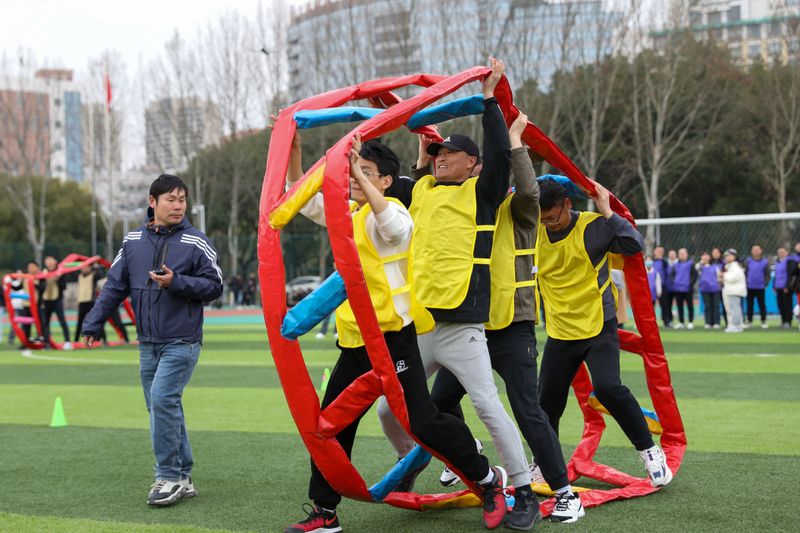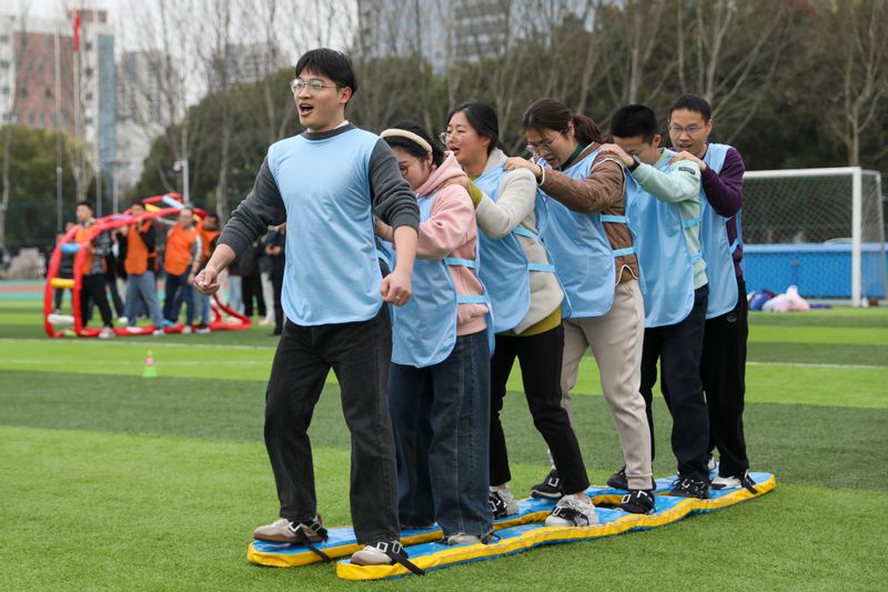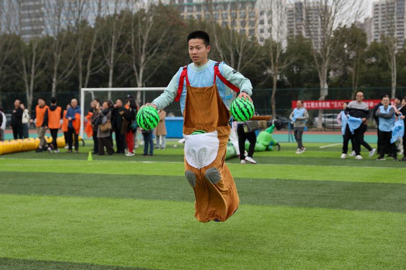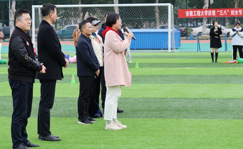 3月13日,由校工会、体育学院共同主办的“奋进新征程 健康展风采”趣味运动比赛在我校第一田径场开赛。副校长周虹屏出席开幕式并致辞。经过激烈的角逐,体育学院、生物与食品工程学院、后勤代表队3支参赛队伍斩获一等奖,数理与金融学院、机关代表队等7支参赛队伍荣获二等奖,纺织服装学院、电气工程学院(集成电路学院)等9支参赛队伍获得优胜奖。 开幕式上周虹屏致辞,她指出,本次趣味运动会集运动性、趣味性、互动性、挑战性于一体,希望通过今天的活动能够帮助教职工强健体魄、增加交流、增进友谊,增强教职工之间的凝聚力和团队精神,共同营造昂扬向上的校园文化氛围, 助力学校高质量发展。