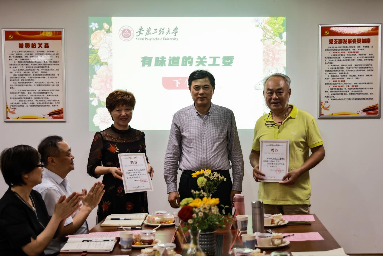 张志宏指出:我校关工委积极创新工作方法,通过持续培育创新品牌,将越来越多的老同志吸收到“五老”工作队伍中,取得了很好的成效,值得充分肯定;关工文化小院的建设也很有特色,有品有味有内涵,要建立机制坚持下去,打造好关工委的“金字招牌”。张志宏表示:“五老”是做好青年思想政治工作的重要力量,他们有热情、有情怀、有专长,相关部门和学院要提高认识,要把关心支持关工委工作作为分内之事,充分用好“五老”资源,营造“传帮带”的良好氛围,既要给平台,也要交“任务”,进一步助力学校党建工作、人才培养、教学科研团队建设等;关工委要结合学校的重点、中心工作进行谋划部署,不断完善工作机制,指导推动二级关工委建设,在发挥好红色骑行思政工作室作用的同时,继续拓展培育更多的“五老”工作室,有效融入学校大思政课建设,助力“三全六专”育人实践。 苏国红围绕“关工委工作的时代要求和创新”提出工作要求:校关工委要围绕新时代大学生成长成才的规律,创新工作方法积极融入学校“三探”式理论课改革,帮助青年教师和学生历史探源,理论探流,实践探因,有效补充我校大思政课建设,彰显具有我校特色的“银龄助航”品牌;“五老”要持续助力学校党建工作,做好党校督导,督查党员发展等工作;“五老”见证了学校的建设和发展,要将爱校的情怀融入“三全六专”育人实践中,充分引导大学生传承红色精神,践行大学精神,厚植爱党颂党、爱校荣校情怀。 凤权从新质生产力的基本内涵、典型特征、践行路径等进行宣讲,从人才培养、人才引进、人才使用等方面通报了我校人才队伍建设情况。凤权指出:我校围绕着新质生产力,完善结构优化、重点领域倾斜、打造团队、服务产能的人才建设工作机制,把“青苹果”变“红苹果”“金苹果”,积极提升科技创新能力,不断推进学校高质量发展。“五老”是学校建设发展的宝贵财富,老同志们与时俱进,关心关注新质生产力和人才队伍建设,为学校的建设和发展做出了积极贡献。 会上,张志宏为“红色骑行”思政工作室负责人赵国庆、曹锦芬颁发了入驻校关工委的聘书。