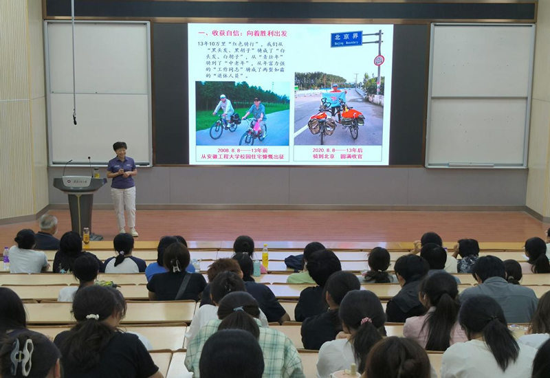 为落实学校“三全六专”育人实践,帮助新生坚定信念,砥砺品格,启迪党性,引导学生“正”起来,9月26日下午外国语学院邀请“中国当代徐霞客”暨全国红色旅游特别奖获得者、学校退休党员教师赵国庆、曹锦芬夫妇在2教报告厅为新生开展“红色骑行”专题讲座,学院党委副书记李校林、新生辅导员以及全体2024级本科新生参加本次讲座。 赵国庆曹锦芬夫妇讲述历时13个春夏秋冬,骑行10万里来庆祝党的百年华诞,分享了骑行中传递“红色精神”的坚持、瞻仰红色经典的感动、绿色骑行带来的益处。此外,也教导同学们不忘感恩伟大光荣正确的中国共产党、感恩伟大领袖和仁人志士、感恩所有爱国军队、感恩革命先烈,激励新生时刻铭记历史、赓续红色血脉、传承红色基因,积极向党组织靠拢。同学们深受感动,备受鼓舞,纷纷表示要向优秀老共产党员学习,学好党史,讲好党的故事,将自己的爱党爱国感情融入到校内志愿服务、课外活动、主题教育活动中。