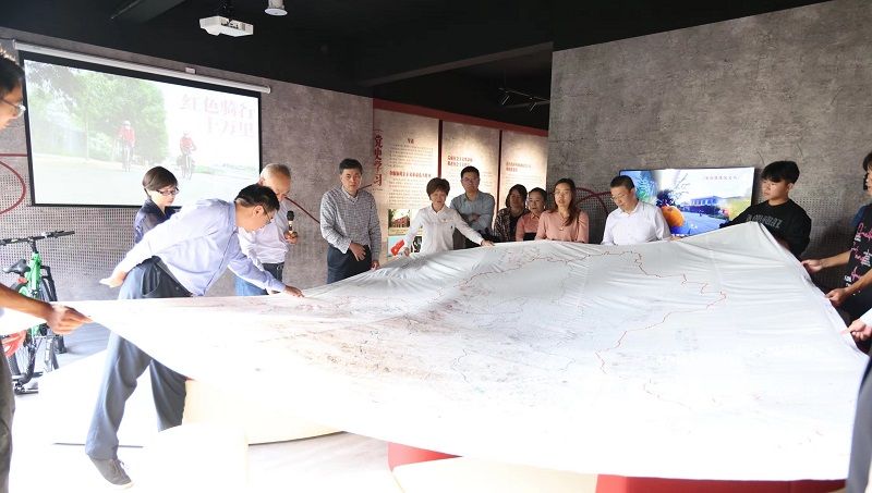 据悉,红色迹体验馆主要展示了我校退休党员、“中国当代徐霞客”赵国庆、曹锦芬红色骑行1310万里致敬伟大建党精神的实践成果和学校近年来高质量党建工作成效,以轻浮雕造型、软膜动感灯箱、骑行装备实物展示、沉浸式的骑行体验和可替换式的卷轴设计等进行全方位展示。场馆占地180平米,由序厅、骑迹厅、体验厅、践行厅组成。以朝红、青绿、工灰三种主体颜色来表现弘扬光荣传统、祖国的大好河山以及勤劳朴实的安工程工匠精神,该馆由工会(离退休工作处)作为牵头单位负责建设,历时三个月完成。张志宏、赵国庆、曹锦芬等为开馆仪式揭幕。
