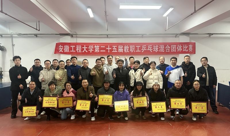 12月4日至11日,校体育运动委员会和校工会联合主办了校第二十五届教职工乒乓球混合团体赛。经过激烈的角逐,计算机与信息学院代表队摘得冠军,化学与环境工程学院代表队和经济与管理学院代表队分获亚军和季军,机关党委代表队和纺织服装学院代表队荣获本届比赛优秀组织单位。赛后,举行了简短的颁奖仪式,校党委常委、副校长张开炳及相关单位负责人为各优胜队颁奖并合影留念。