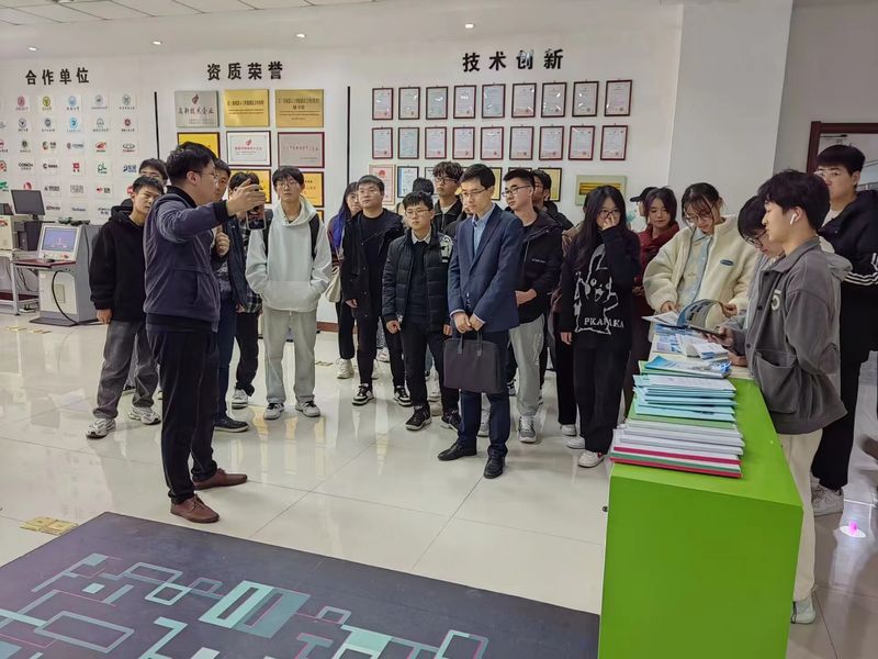 学员们参观了公司文化宣传廊,专班成员之一教务处副处长夏登峰和固高公司工程师杨宸向学员们介绍了固高企业发展概况,固高公司作为中国百佳示范机器人系统集成商、安徽省机器人产业技术创新战略联盟理事单位、G60机器人联盟秘书长单位具有丰富的工业机器人自动化集成应用经验,与东南大学、交通大学等30余所国内知名院校开展合作,共建研发和培训中心。