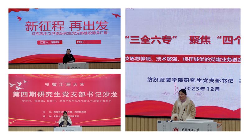会上,研究生部副主任刘宏建、周伟分别领学了《论党的青年工作》青年要自觉践行社会主义核心价值观和习近平总书记2023年6月26日在同团中央新一届领导班子成员集体谈话内容。省级研究生“样板党支部”书记、纺织服装学院研究生党支部书记裘秀群和马克思主义学院研究生党支部书记裴利萍以及研究生宿舍第一功能型党支部副书记李圆圆分别围绕党支部建设的情况进行了主题发言。