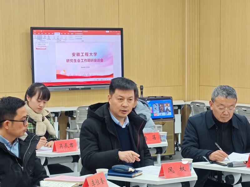 为深入学习宣传贯彻习近平总书记关于青年工作的重要思想和党的二十大精神,深入落实学校“三抓”工作要求,推深做实“三全六专”育人实践,提升研究生会工作质量,1月5日,校研究生会工作调研座谈会在2教202智慧教室顺利召开。校党委常委、副校长凤权出席会议,党委研究生工作部部长王勇智、校团委书记李恒奎、研究生部副主任刘宏建、校研究生会主席团成员、各部部长、研究生会干部代表以及研究生管理科工作人员参加会议。会议由王勇智主持。