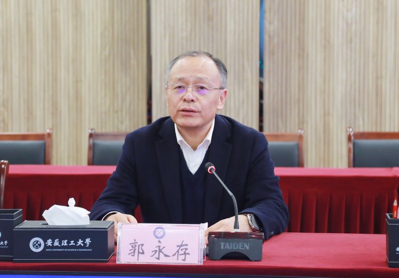 郭永存代表学校对张志宏、卢平一行到来表示欢迎。他高度赞赏了学校近年来坚持走提升质量、打造特色为核心的内涵式发展道路。他指出,安徽理工大学与我校业缘相融、人缘相亲,双方在长期交流合作中建立了深情厚谊。期待双方进一步深化在学科建设、科技创新、平台建设、人才交流等领域的交流合作。