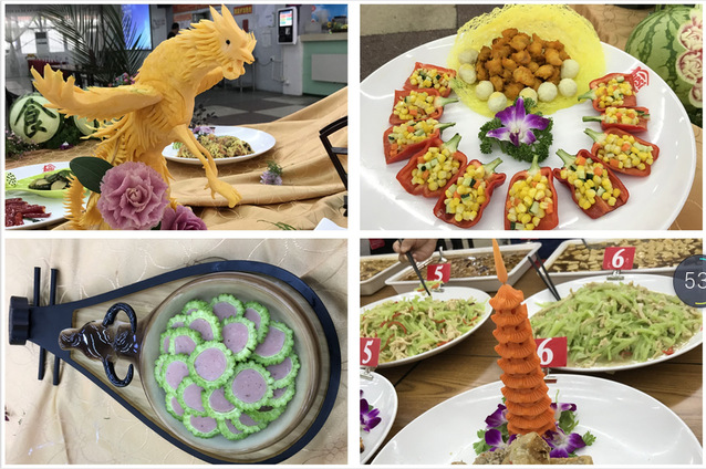 活动现场,每位参赛者各制作2道相同菜品和1道特色菜,相同菜品旨在考察校园大厨们的基本功,特色菜品彰显厨师匠心所在。10位厨师使出浑身解数,各显神通,“东坡花雕鸡”“化骨绵掌”“翡翠白玉虾”“海阔凭鱼跃”“风吹草低见牛羊”等特色菜品一一上桌,大厨用精湛的刀工将凤凰落木的形象展现得淋漓尽致,心型韭菜诉说着他们的一往深情……造型精美、芳香四溢的美食让评委赞不绝口。合肥市餐饮烹饪行业协会执行秘书长张广民说:“校园美食节的举办,不仅能提高厨师们的烹饪技艺,更会促使餐饮公司进一步提升服务师生的能力,增强发展活力,让广大师生尝到色香味俱全的菜肴。”