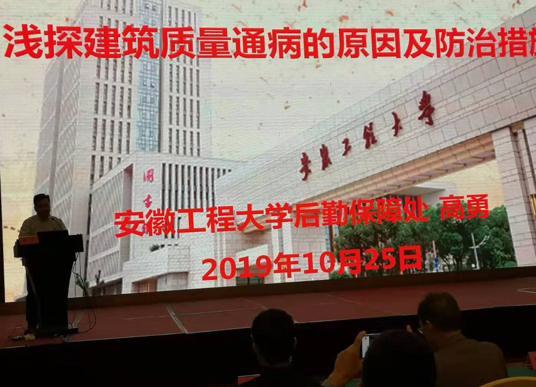 ,省教育基本建设学会在安庆碧桂园凤凰酒店举办省首届建设学会专家论坛,来自全省各高校、教育厅直属中学、普教及各地、市、县教育局代表120多人参加了论坛,我处项目管理科高勇应邀做了“浅探建筑质量通病的原因及防治措施”专题发言。