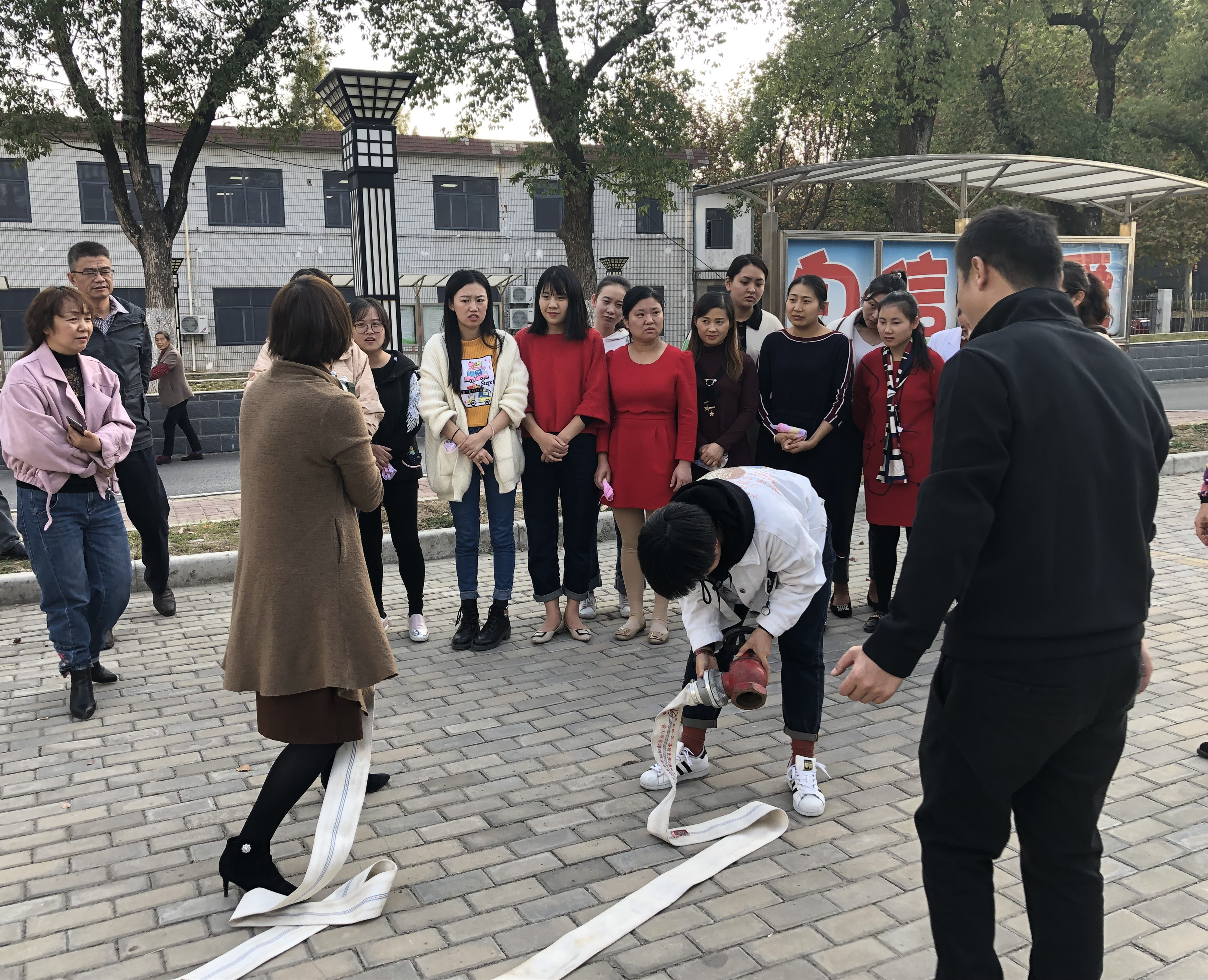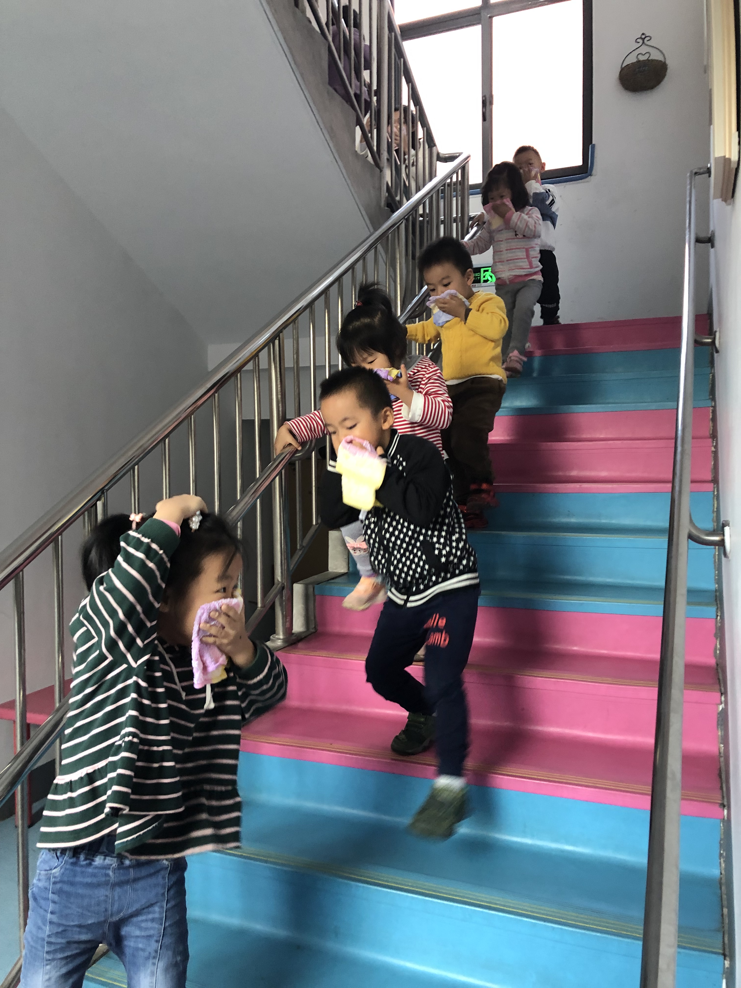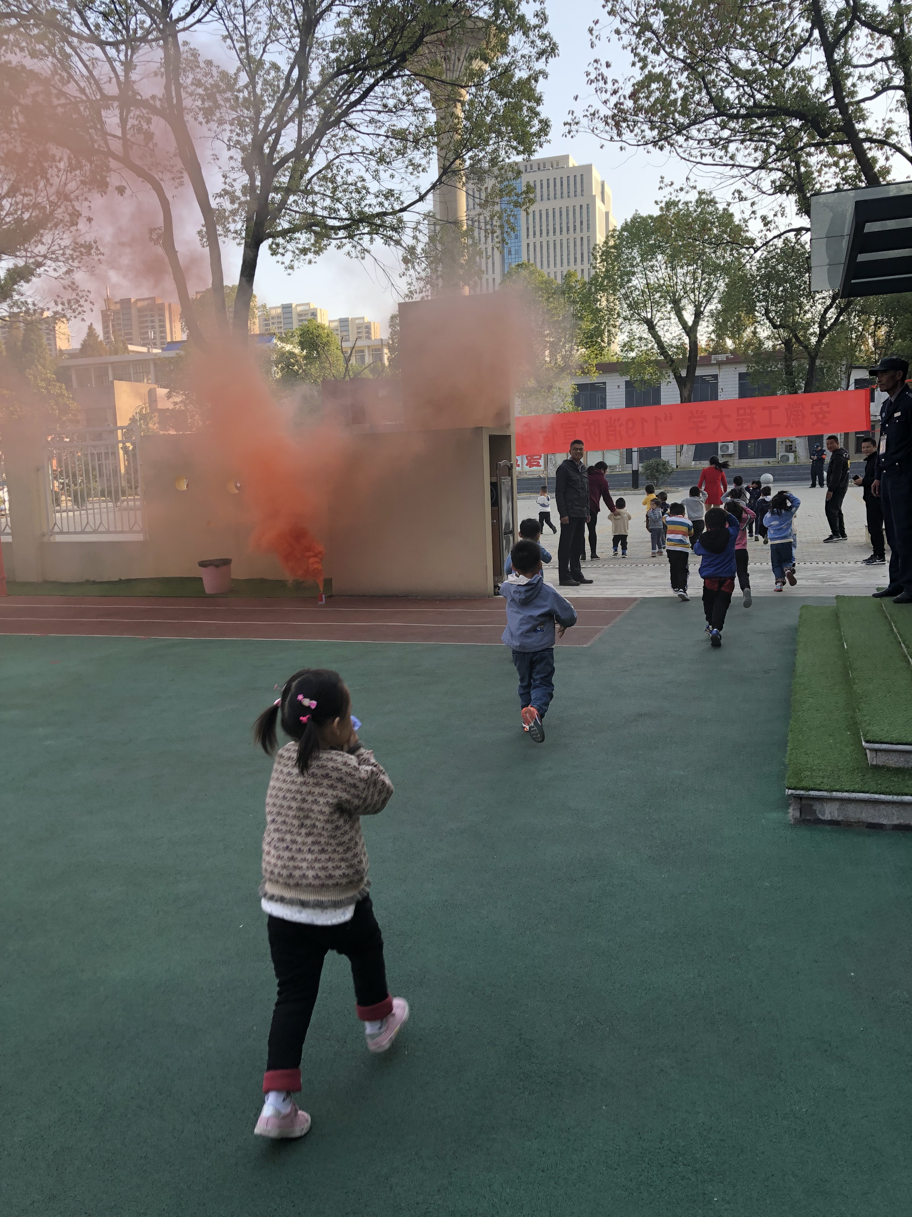 下午3时,伴随着警报声响起,各班幼儿在老师们的组织下,用湿毛巾捂住口鼻,弯腰低头快速有序地按照预定路线从教室撤离到安全地带,师生在撤离中反应迅速、动作规范,整个消防疏散活动历时3分钟35秒。校保卫处李岗等亲临现场指导教职工快速灭火实际操练,着重讲解了干粉灭火器分为提、拉、喷三步,并现场进行演示。