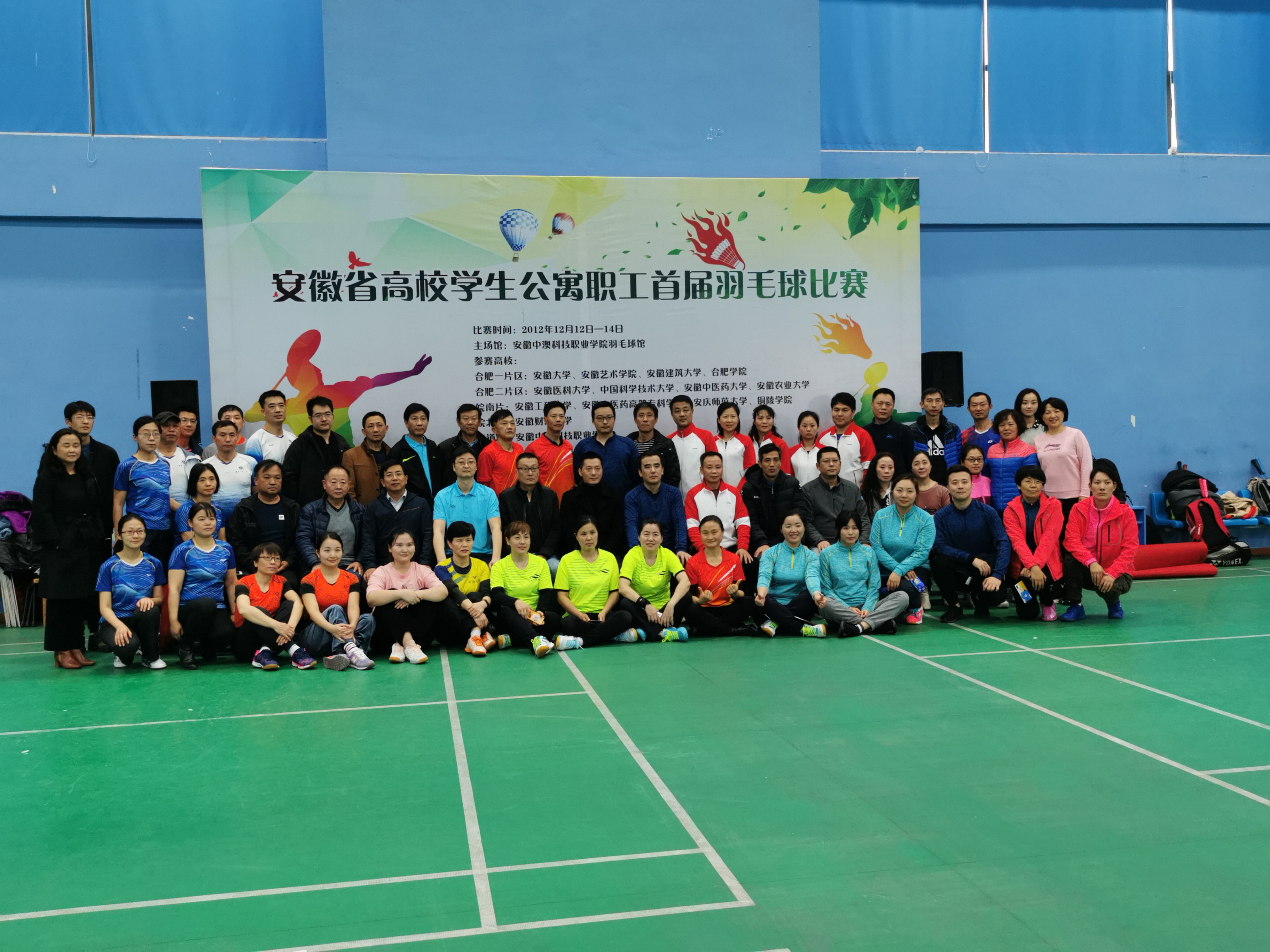 2019年12月12-14日,由安徽省高校后勤协会学生公寓专业委员会主办,安徽医科大学、安徽中澳科技学院等承办的“安徽省高校学生公寓职工首届羽毛球比赛”在安徽中澳科技职业学院举行,来自全省四个片区14所高校及东道主近70名选手参赛。