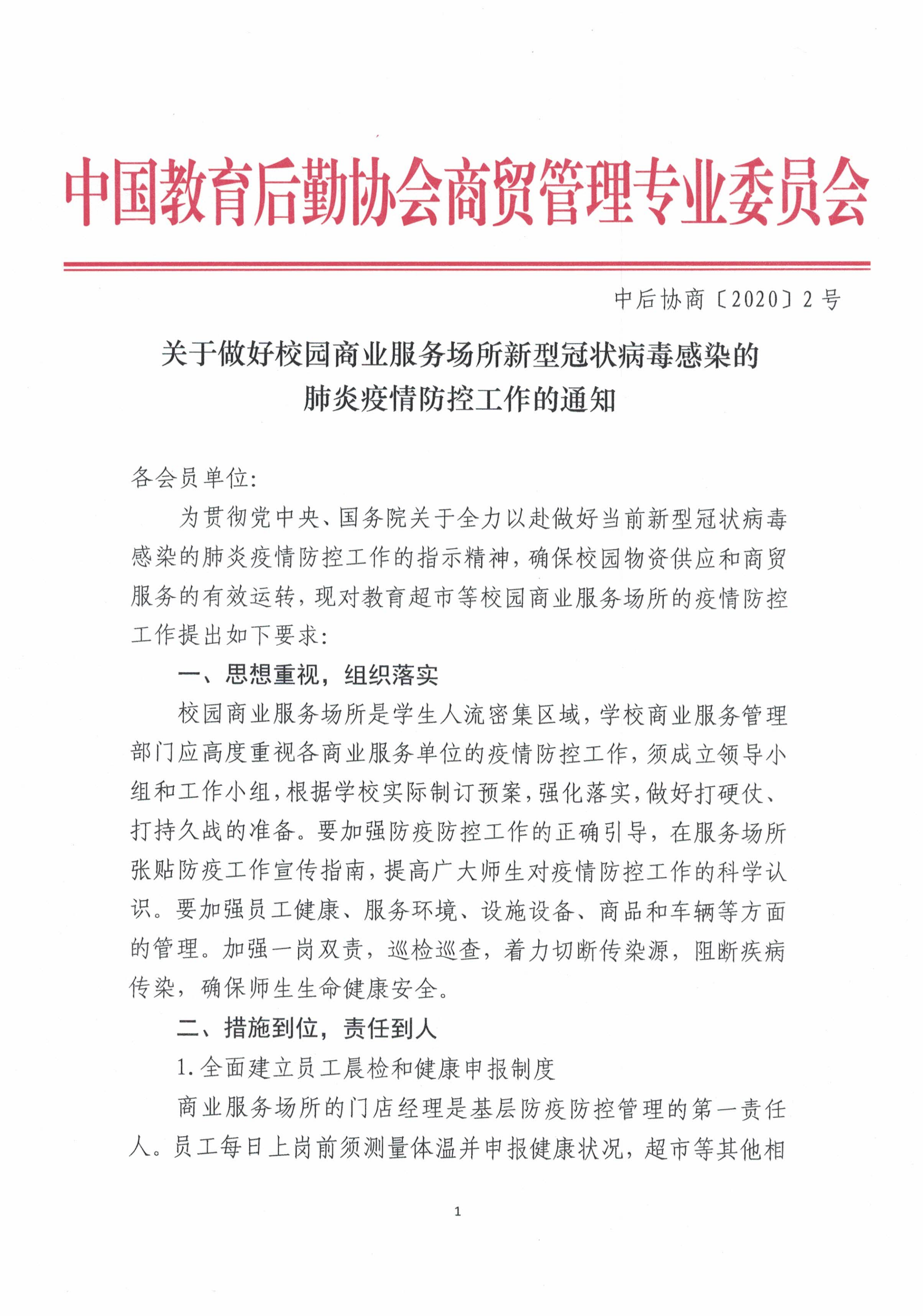 关于做好校园商业服务场所新型冠状病毒感染的肺炎疫情防控工作的通知