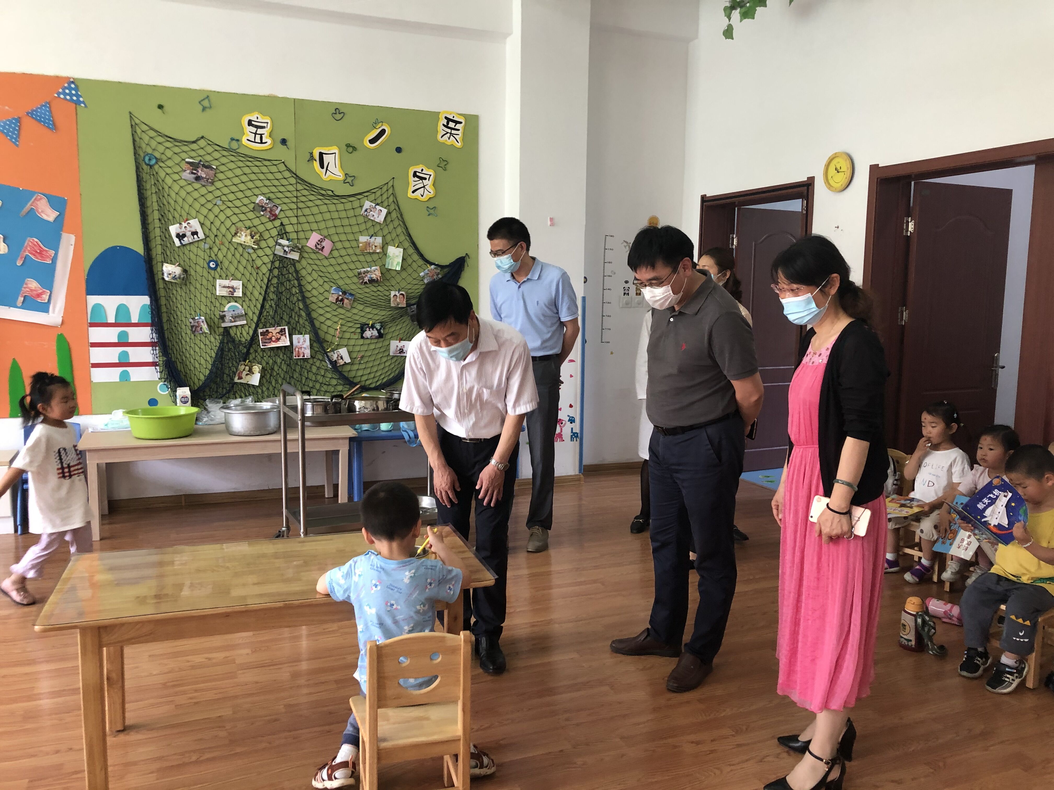 刘宁一行实地检查了幼儿园各班级、食堂、公共区域的环境卫生和物资配备情况,对幼儿园的新冠肺炎疫情防控情况和返园开课工作等给予了充分的肯定,他强调,幼儿园要压实疫情防控工作责任,严格各项防控措施,密切掌握师生出勤动态,保证全体师生身心健康。他走访了各个班级,与小朋友、老师亲切交流,深入了解孩子们在园的生活情况和教职工的工作情况。此外,刘宁详细地询问了校附幼参加市一类园评估情况,同时对今后的发展提出了意见和希望。