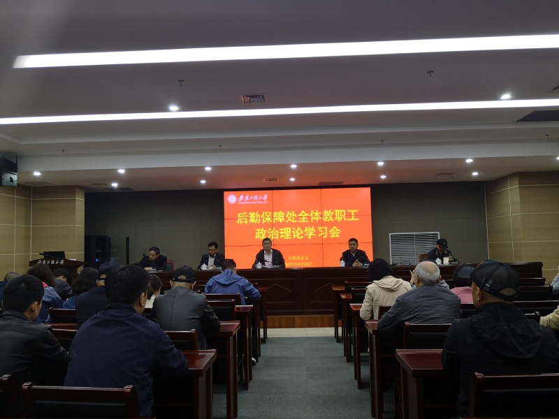 4月23日下午,后勤保障处在图书馆202召开全体教职工政治理论学习会,会议由后勤党总支书记纪天新主持。