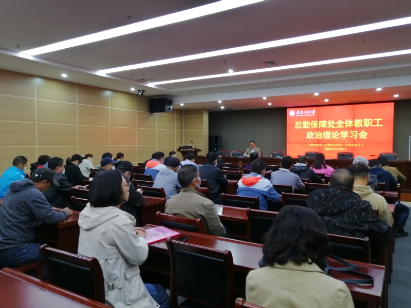 10月21日下午,后勤保障处在图书馆202会议室召开全体教职工政治理论学习会,集体学习党的二十大报告,会议由后勤党总支副书记、后勤保障处副处长柴方松主持。