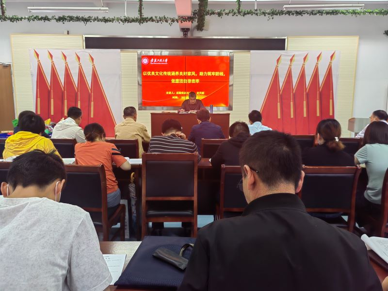 为深入开展学习贯彻习近平新时代中国特色社会主义思想主题教育,落实“三抓”工作部署,加强后勤党总支党(后勤保障处)党风廉政建设和反腐败工作,5月17日下午,后勤党总支书记纪天新以《以优良文化传统涵养良好家风,助力筑牢防线,做廉洁自律表率》为题讲主题教育专题党课。后勤党支总全体党员,后勤保障处科级干部参加学习。